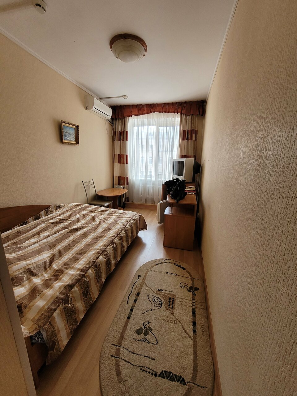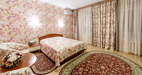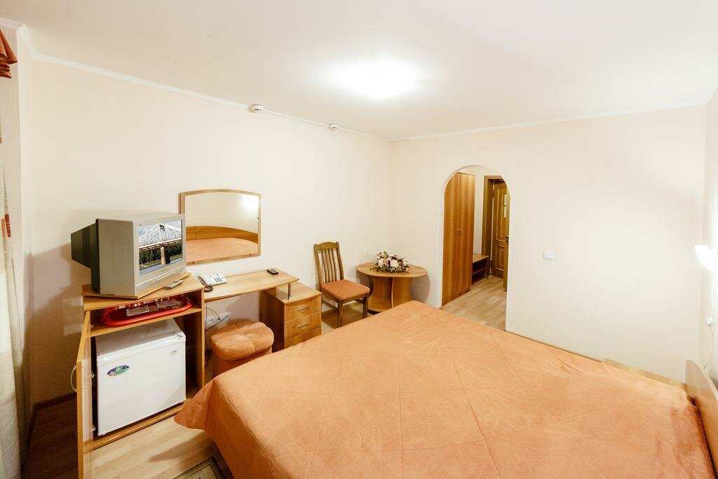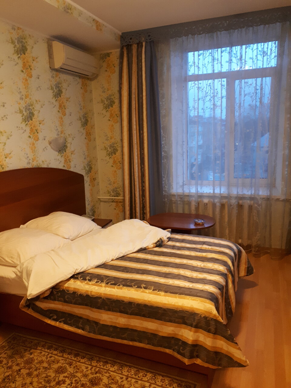 Бронировали 2 номера, стандарт и улучшенный. В обоих номерах не было горячей воды, сломаны обогреватели. Один починили, из улучшенного переселили в другой номер. Уборка на троечку, под столом мусор и пыль. Душевая с плесенью и ржавчиной. В улучшенном белье постельное качественное, в стандартном полисатин редкого плетения, один пододеяльник рваный. Попросили заменить, не поменяли. Девушка на ресепшен сказала, что такая у нас гостиница, нужно отзывы читать. Завтрак на выбор из 3 горячих блюд ( рисовая каша, омлет с сосиской, запеканка) пару кусочков ветчины, сыра, джем и йогурт. Кофе плохой растворимый. Женщина в ресторане очень хорошая, отзывчивая. Почему-то сняли вывеску с названием гостиницы, раньше была. Лифта нет, на 5 этаж с багажом трудно подниматься, там еще плутать по коридорам приходится. Из хорошего: расположение в центре, рабочие кондиционеры ( стояла жара), комфортные матрасы.