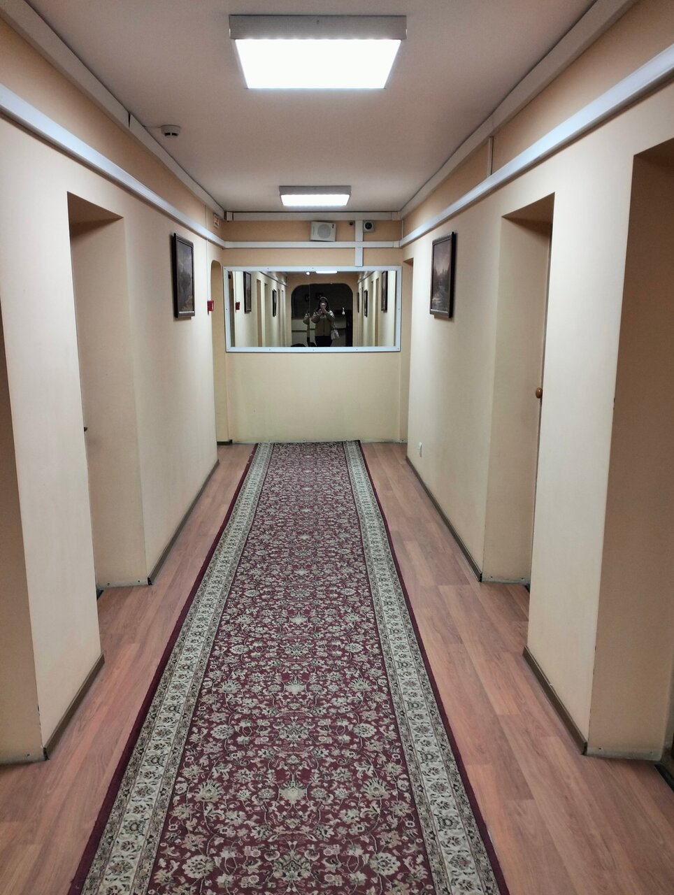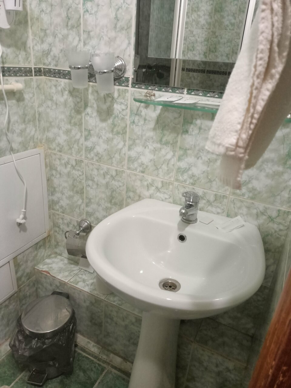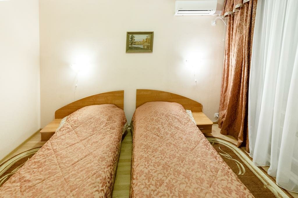 Бронировали 2 номера, стандарт и улучшенный. В обоих номерах не было горячей воды, сломаны обогреватели. Один починили, из улучшенного переселили в другой номер. Уборка на троечку, под столом мусор и пыль. Душевая с плесенью и ржавчиной. В улучшенном белье постельное качественное, в стандартном полисатин редкого плетения, один пододеяльник рваный. Попросили заменить, не поменяли. Девушка на ресепшен сказала, что такая у нас гостиница, нужно отзывы читать. Завтрак на выбор из 3 горячих блюд ( рисовая каша, омлет с сосиской, запеканка) пару кусочков ветчины, сыра, джем и йогурт. Кофе плохой растворимый. Женщина в ресторане очень хорошая, отзывчивая. Почему-то сняли вывеску с названием гостиницы, раньше была. Лифта нет, на 5 этаж с багажом трудно подниматься, там еще плутать по коридорам приходится. Из хорошего: расположение в центре, рабочие кондиционеры ( стояла жара), комфортные матрасы.