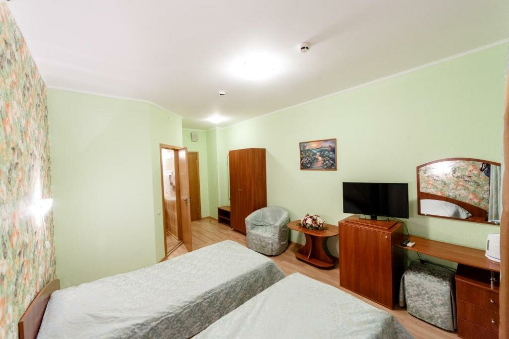 - Доступная цена за уровень сервиса.; Чистые и просторные номера.; В номере есть чайник, холодильник, телевизор.; Рабочие кондиционеры.; Приветливый и отзывчивый персонал.