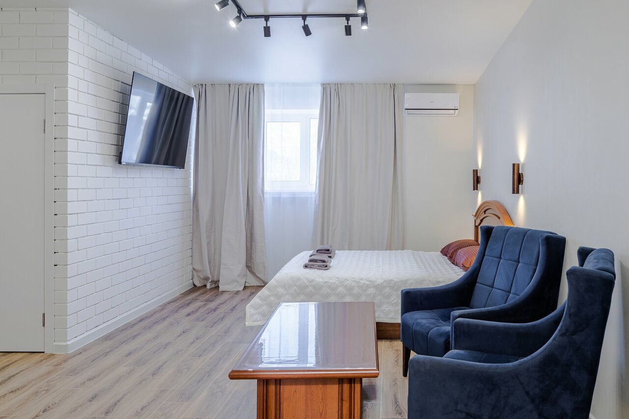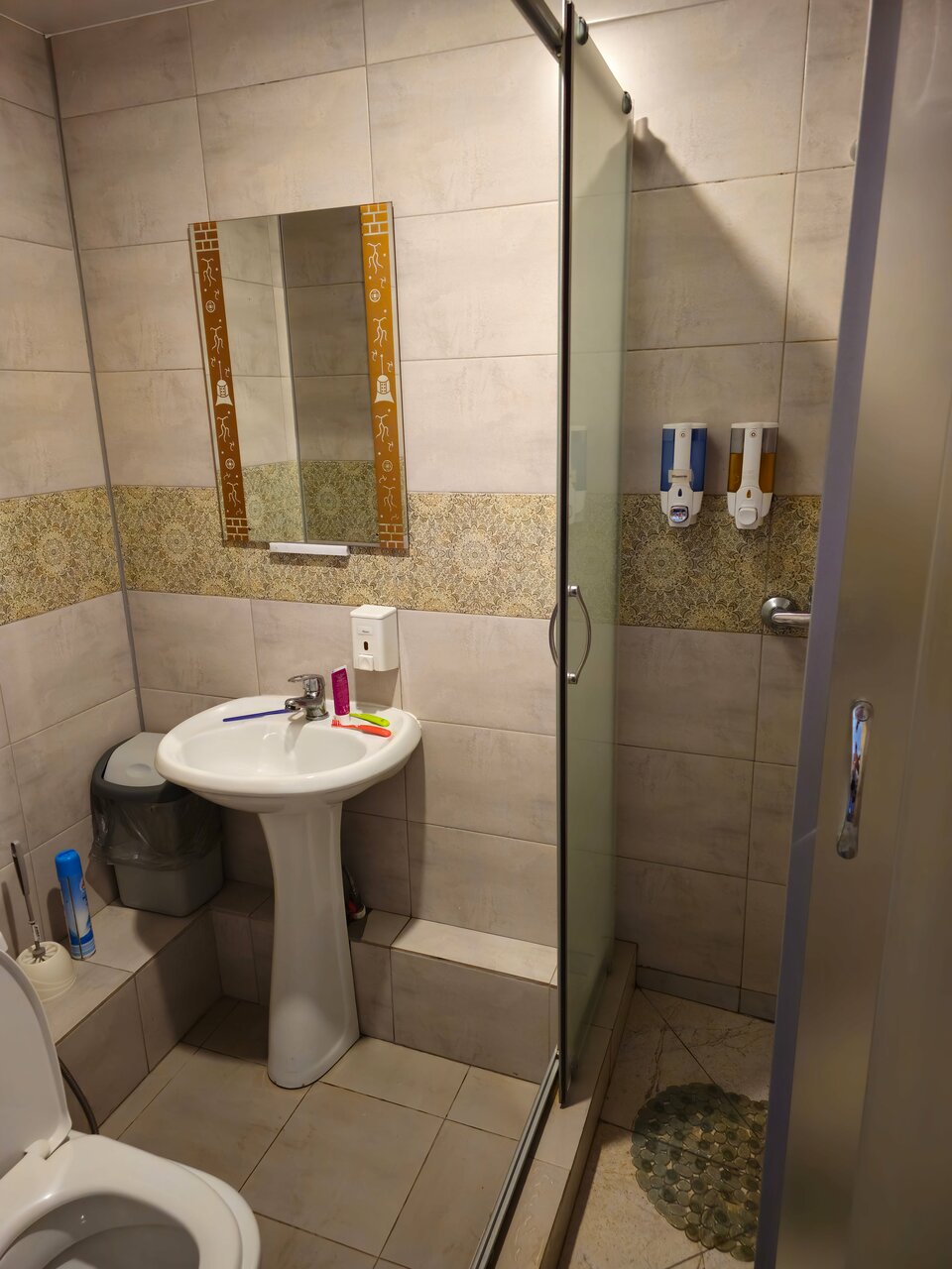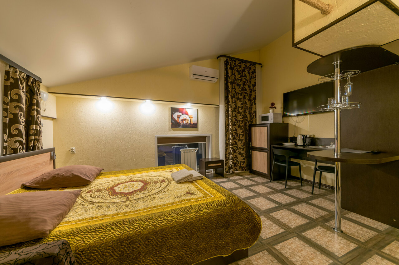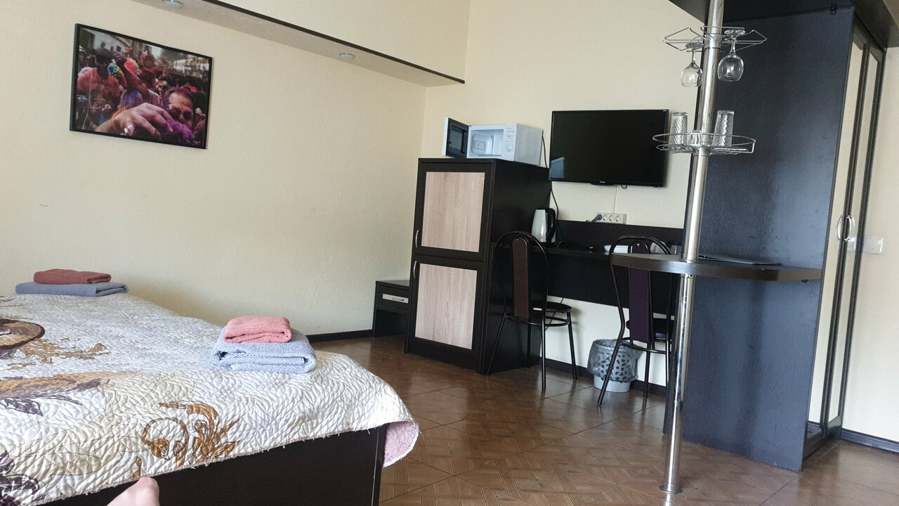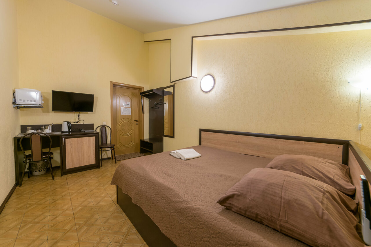 Хорошее соотношение цена-качество. Мы брали эконом, номер небольшой, но чистый и аккуратный. Была микроволновка, холодильник, чайник. Душ чистый, полотенца свежие. До центра города на такси 5 минут. За свои деньги — отличный вариант.