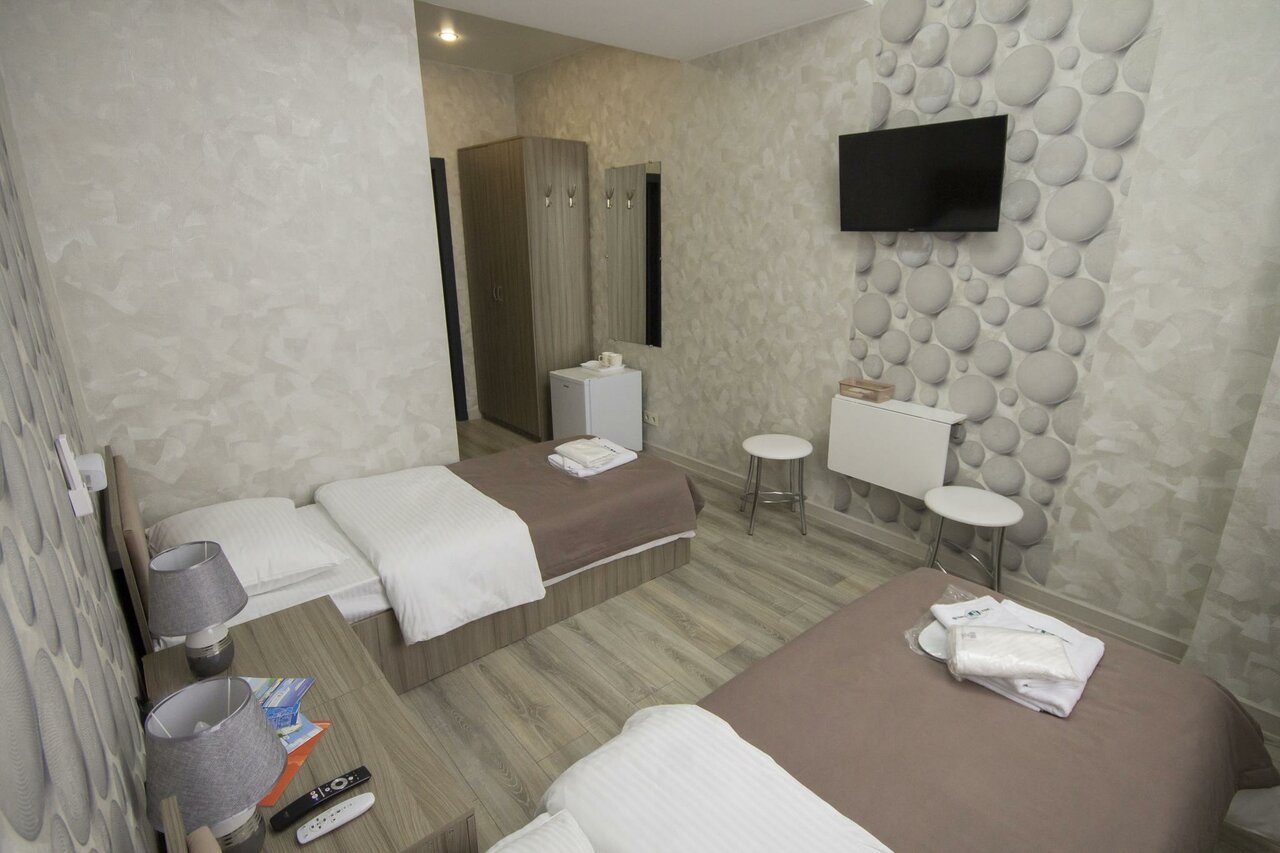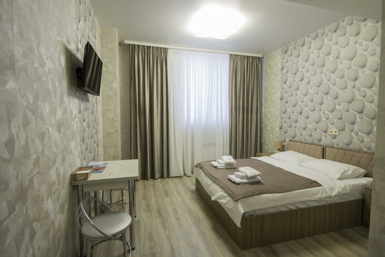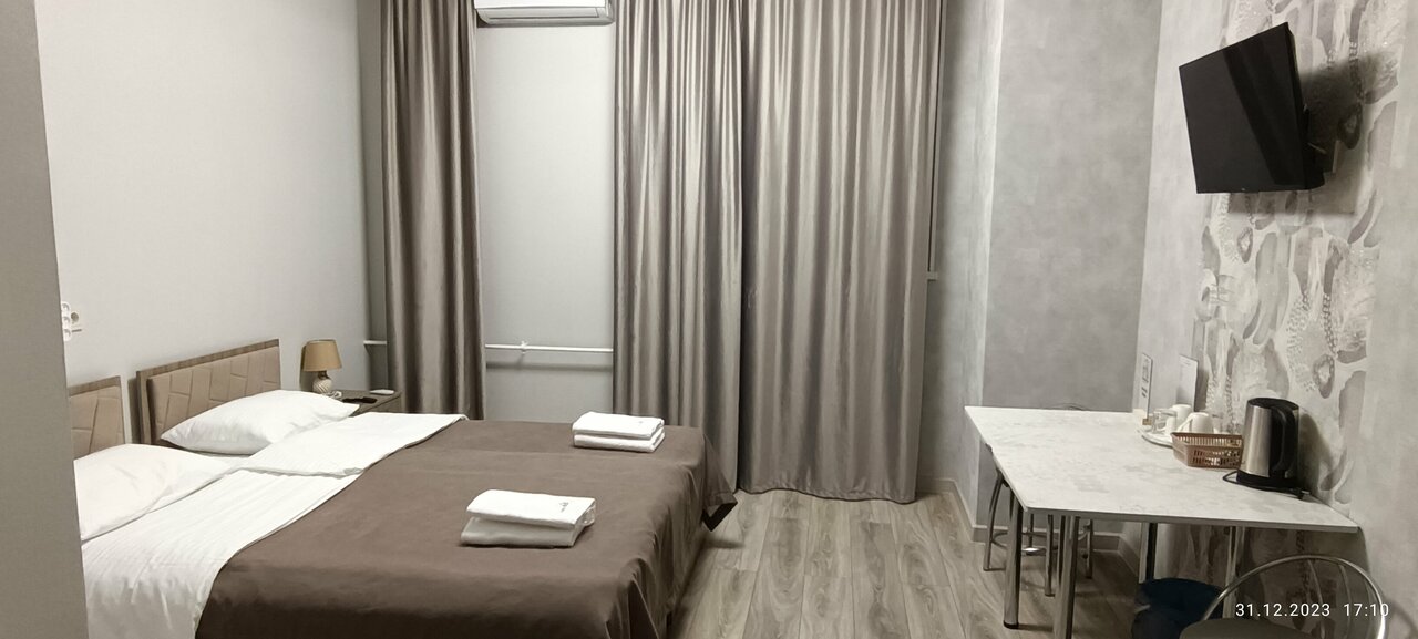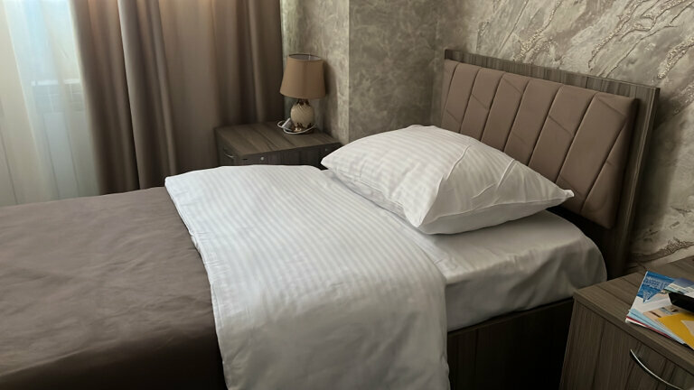 Отель норм, порадовало чистое белье и белоснежные полотенца, наличие парковки тоже весомый плюс, с водой не всегда все четко, то есть горячая, то бежит ледяная:) Из минусов в номере присутствует запах, в ванной комнате тоже, отсутствие коврика в ванной комнате прям печаль. В остальном все хорошо, админы на связи