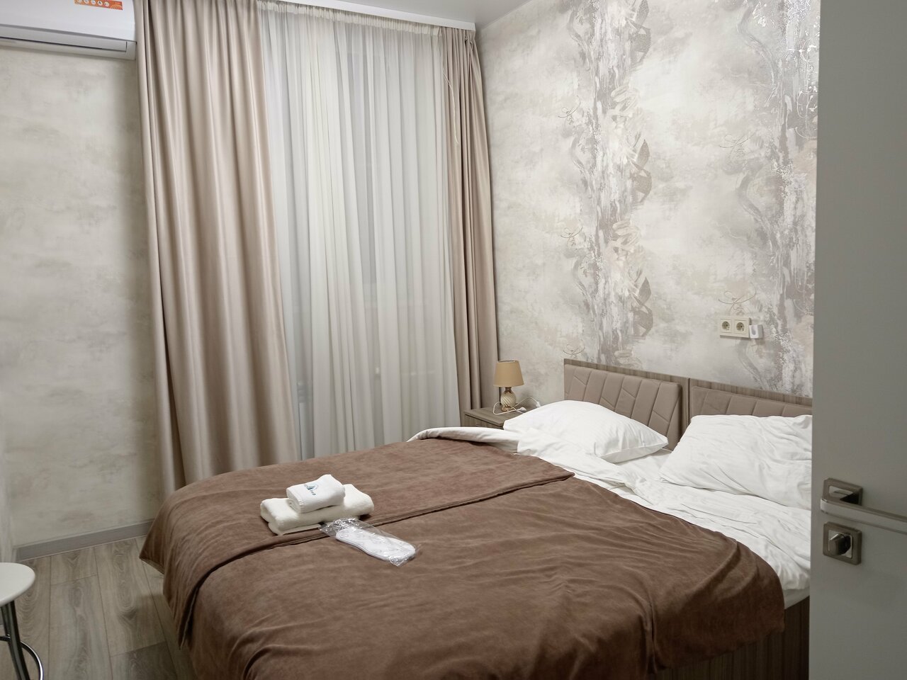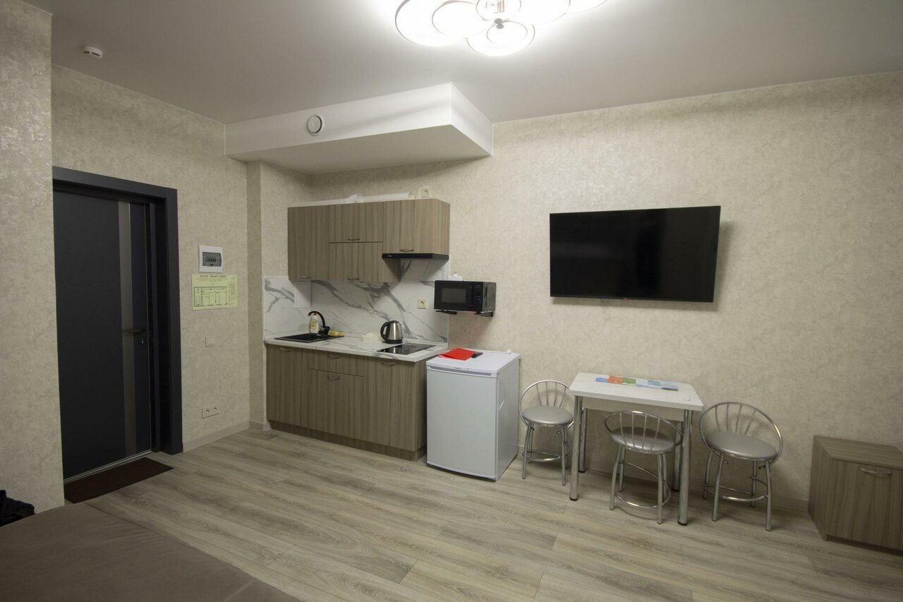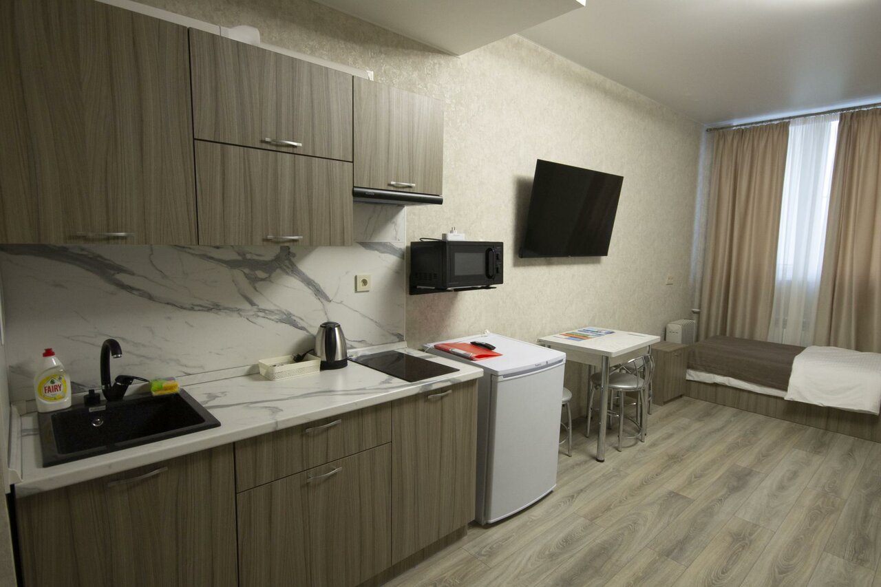 Хороший отель квартирного типа. В номере есть все, включая кухню с посудой. В санузле не только душ, но и ванна. Все исправное и свежее. Рекомендуем