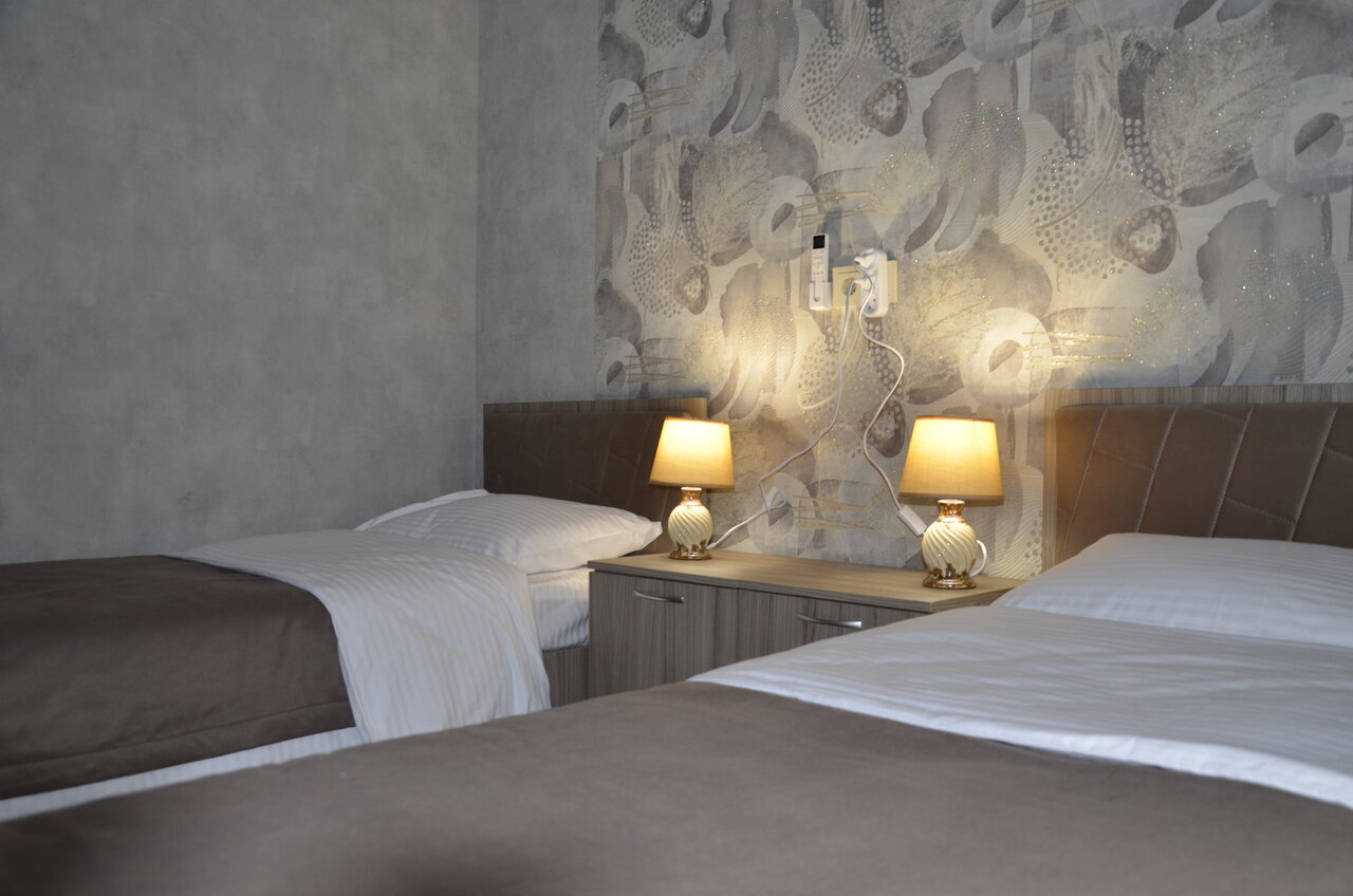 Номера со свежим ремонтом, кровати удобные, всё, что обычно есть в номере, есть в наличии. Но, есть большое НО. Свет может внезапно в ванной включиться и более не включиться. Телевизор — это полный квест. Он не работает просто как телевизор, а хочет только связи с интернетом. С огромным трудом настроенный дежурным администратором, после выключения сбрасывает настройку. Т.е. не имеет памяти.