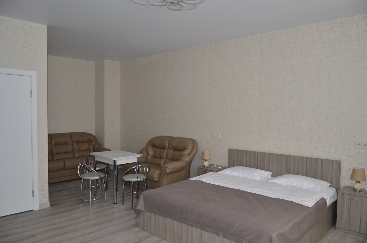 Прекрасный отель, очень дружелюбный персонал 🙂 Жили в полулюксе (на троих), свежеотремонтированный номер с мини-кухней, очень уютно и чисто. Сантехника в санузле тоже прекрасная, просторная душевая кабина, есть тропический душ. Вместе с набором шампуней и гелей дали также зубную щётку и пасту, очень мило. Тапочки тоже дали 🙂 Бесплатная парковка для постояльцев, за шлагбаумом. Ребята молодцы, хочется пожелать успехов 🙂