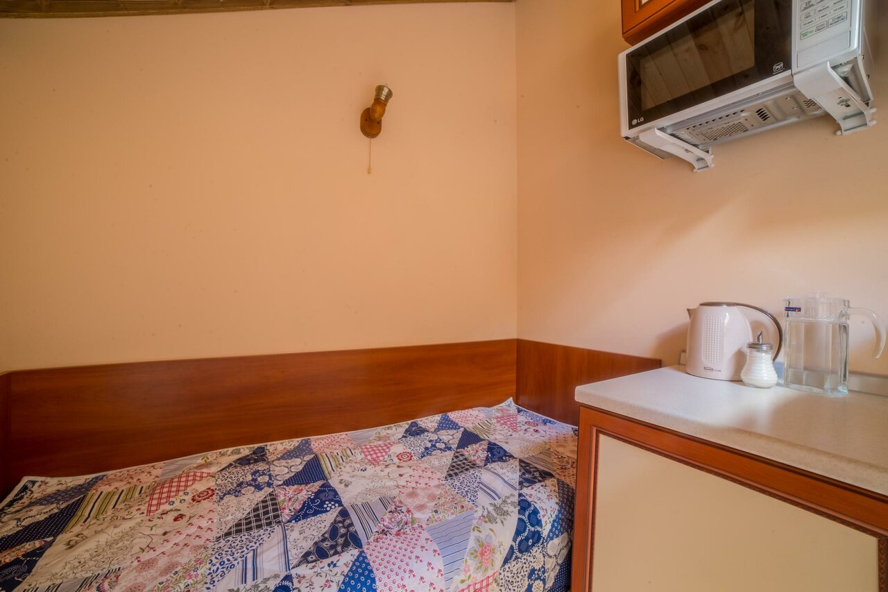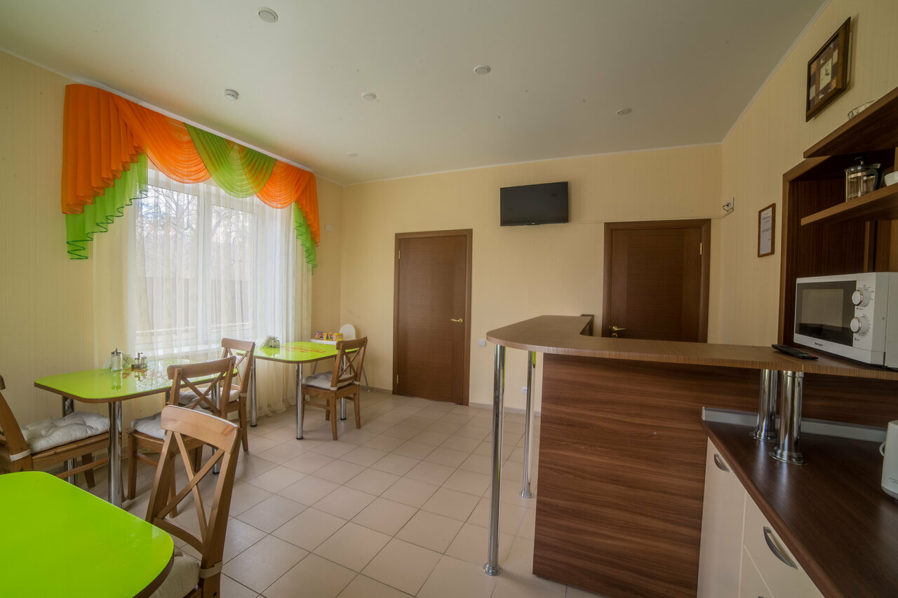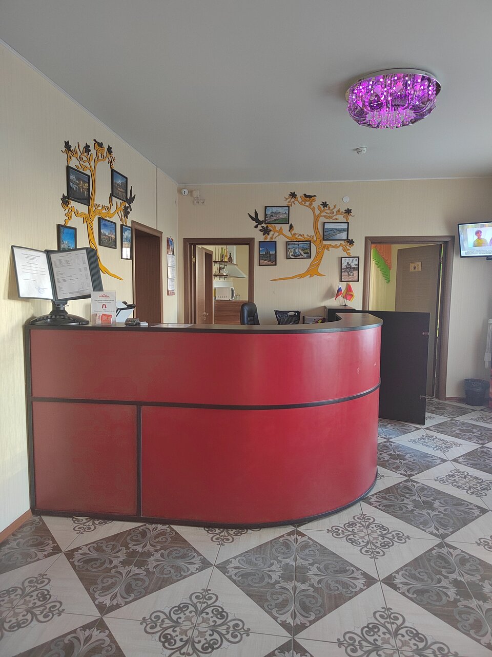 Бронировала номер по телефону, в итоге нас (2 взрослых, ребёнок 10 лет и 2 собаки) заселили в номер комфорт площадью 5кв.м.! И это за 4,5 тысячи)) И правда теремок, подумалось внутри номера нет придверного коврика, от уличной обуви до кровати меньше метра. Где ресепшн накурено, причём как при заселении, так и утром когда уезжали, видимо курилка рядом и тянет все в холл. Грязная микроволновка, дальше номер не обследовали. Из плюсов: графин с водой и большая ванная