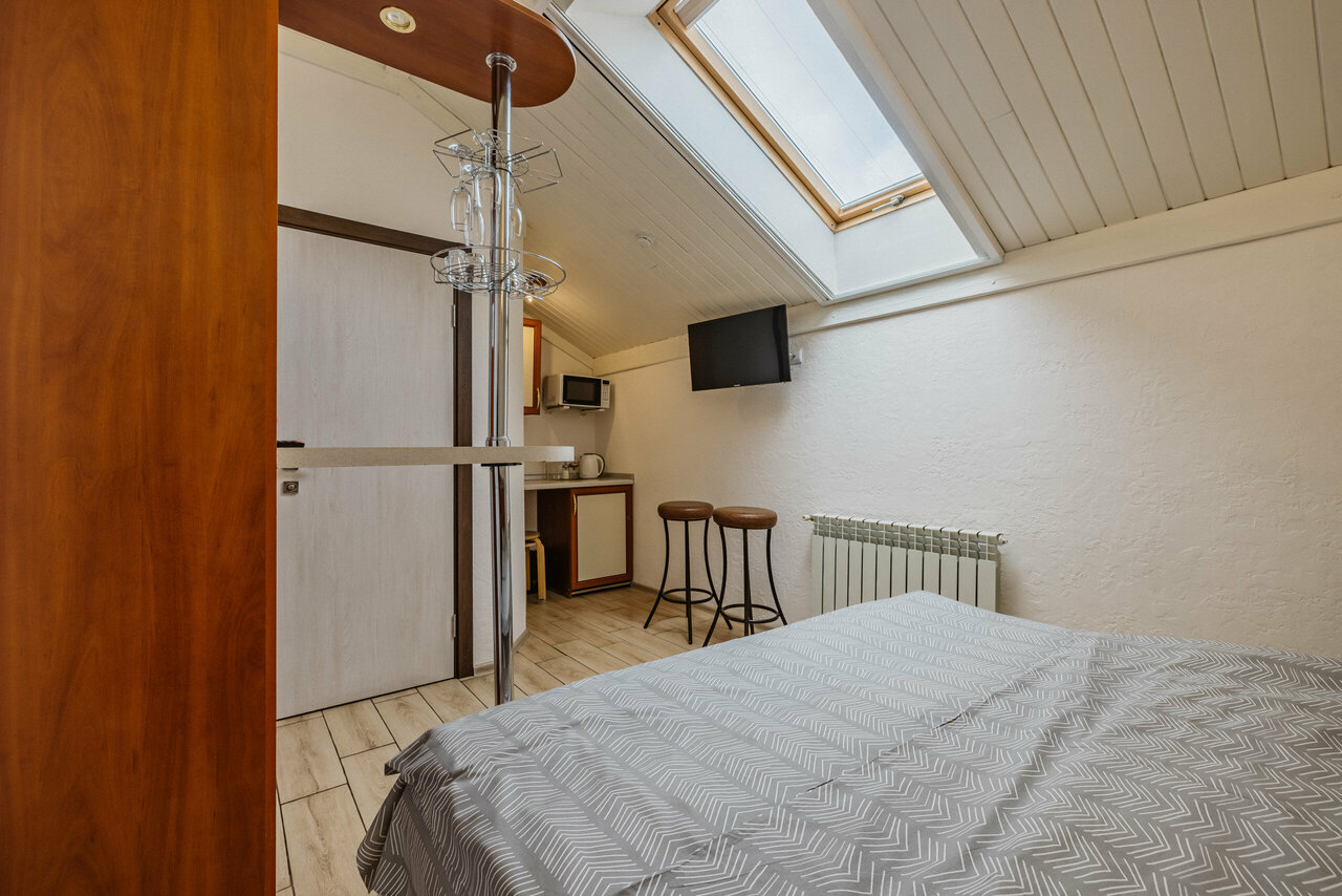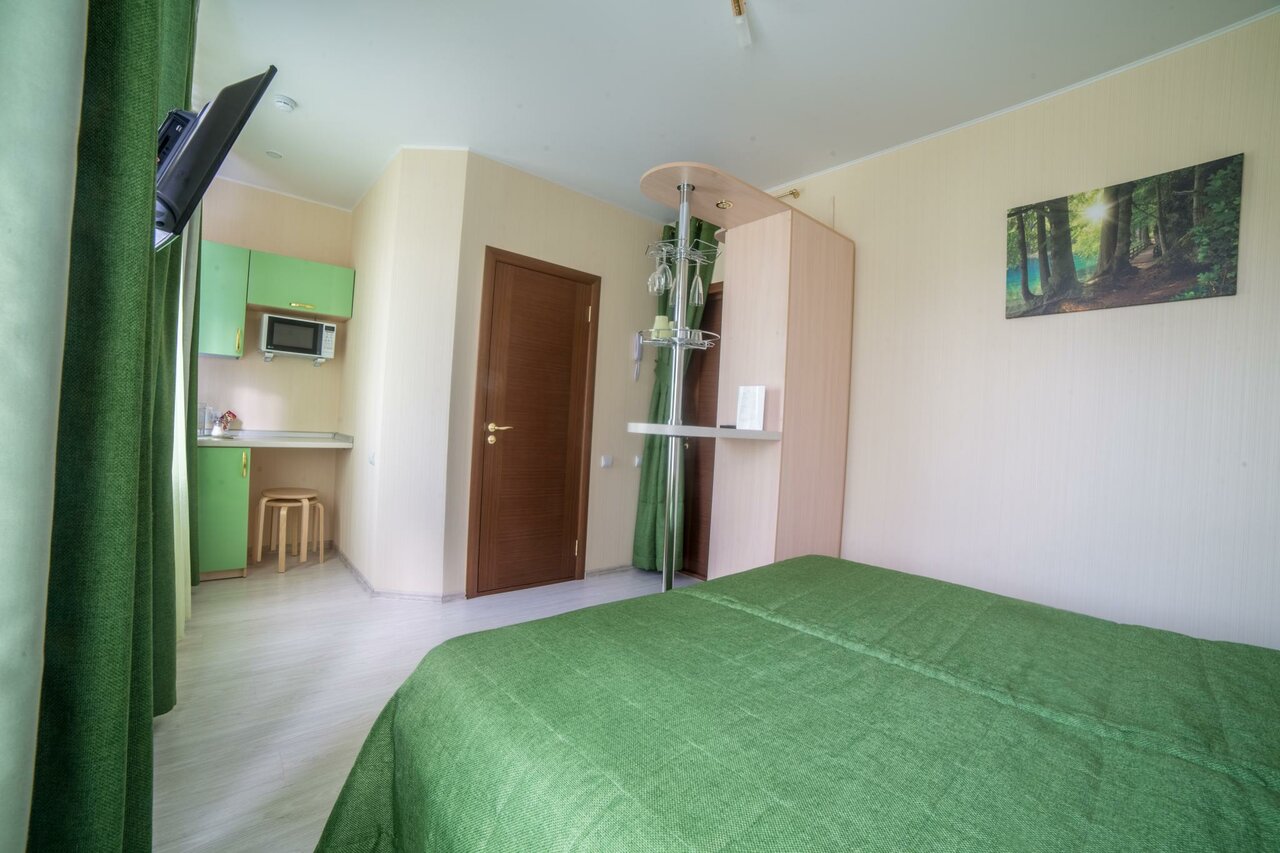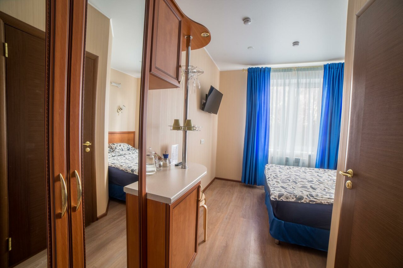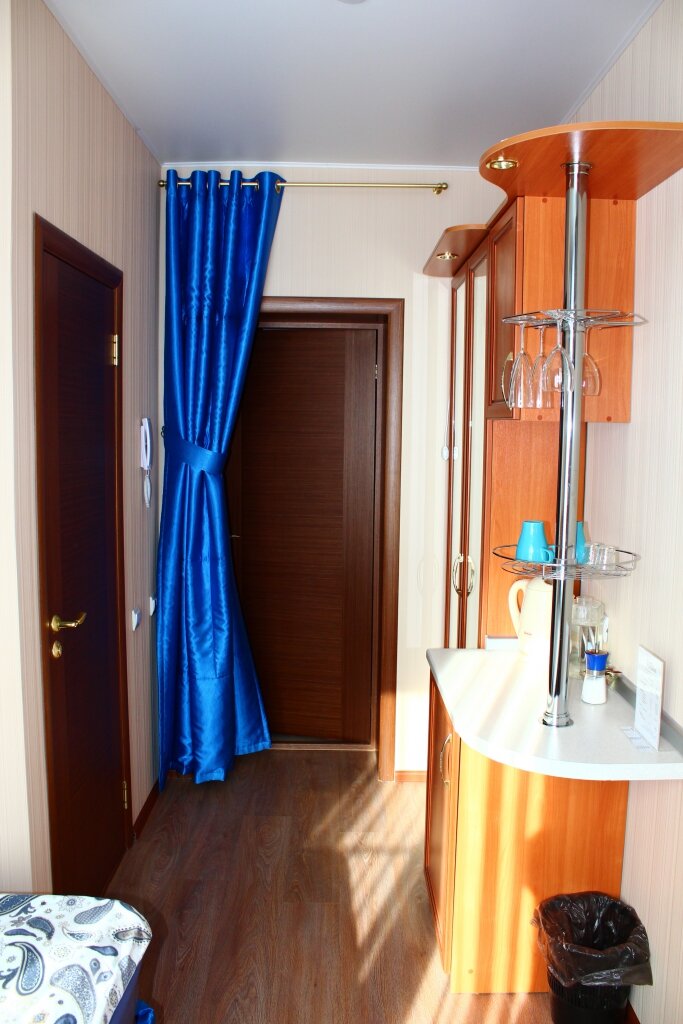Бронировала номер по телефону, в итоге нас (2 взрослых, ребёнок 10 лет и 2 собаки) заселили в номер комфорт площадью 5кв.м.! И это за 4,5 тысячи)) И правда теремок, подумалось внутри номера нет придверного коврика, от уличной обуви до кровати меньше метра. Где ресепшн накурено, причём как при заселении, так и утром когда уезжали, видимо курилка рядом и тянет все в холл. Грязная микроволновка, дальше номер не обследовали. Из плюсов: графин с водой и большая ванная