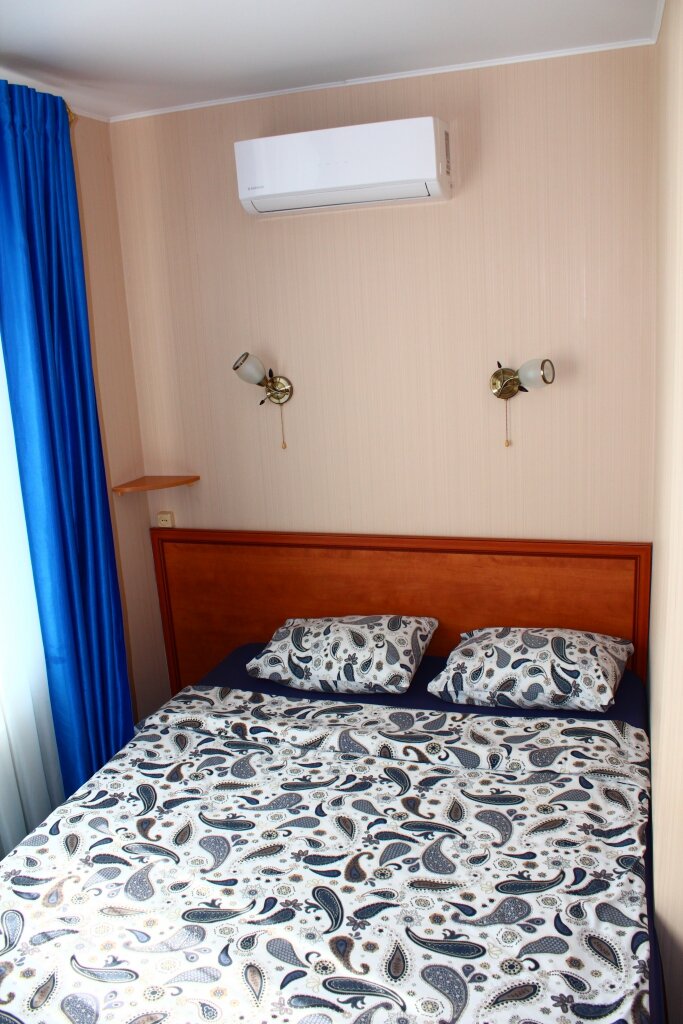 Первое впечатление хорошее. Красивое здание, красивый двор, цветник, мангальная зона, парковка. Внутри чисто, уютно, персонал вежливый. Есть зона для курения. Цена хорошая. Для гостей этого города отличный вариант. В комнате также уютно. Есть шкаф с вешалками, мини бар, стол, табуретки, телевизор, кондиционер. В ванной комнате есть, душ, туалет, шампуни, мыло, фен, полотенца, бумага. Единственный минус, разъезжались матрасы на двухспальный кровати, для тех, кто спит беспокойно, это крайне не удобно, спали в ложбинке. В целом нам понравилось.