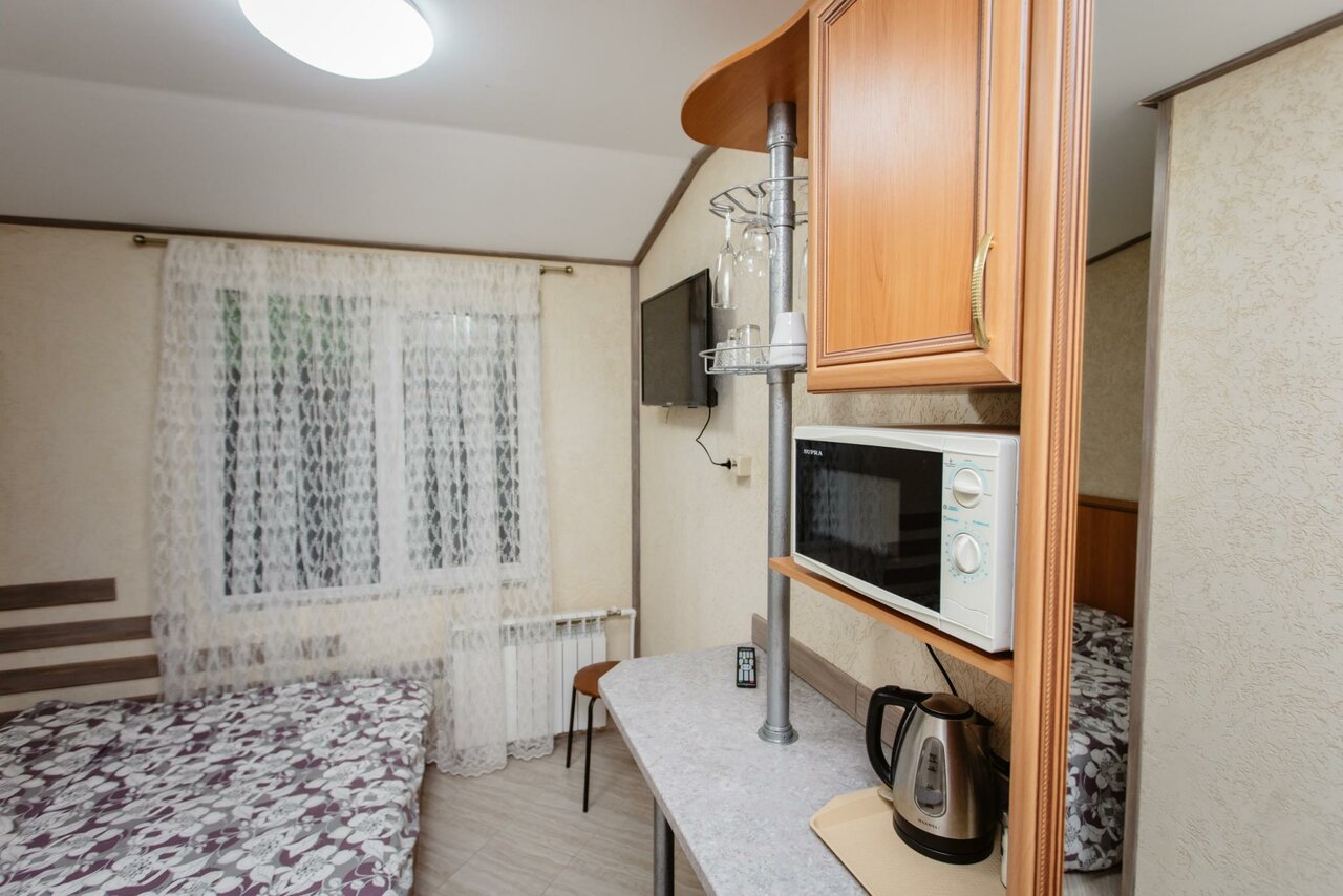 - Удобное расположение (недалеко от центра, тихий район).; Хорошая оснащённость номеров (кухонная техника, посуда, холодильник, чайник).; Уютные и тихие номера.; Приветливый и вежливый персонал.; Наличие парковки.