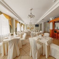 Услуги: — Номера от 3500 ₽/ночь с Wi-Fi, телевизором, санузлом и звукоизоляцией. — Питание: завтрак, полупансион, полный пансион или питание по меню. — Ресторан, бар, кафе, доставка еды в номер. — Бесплатная парковка и камера хранения. — Конференц-зал, коворкинг, банкетные услуги. — Детские кроватки, меню, площадка. — Сауна (платно), настольный теннис, рыбалка. — Прачечная, химчистка, утюг, фен.