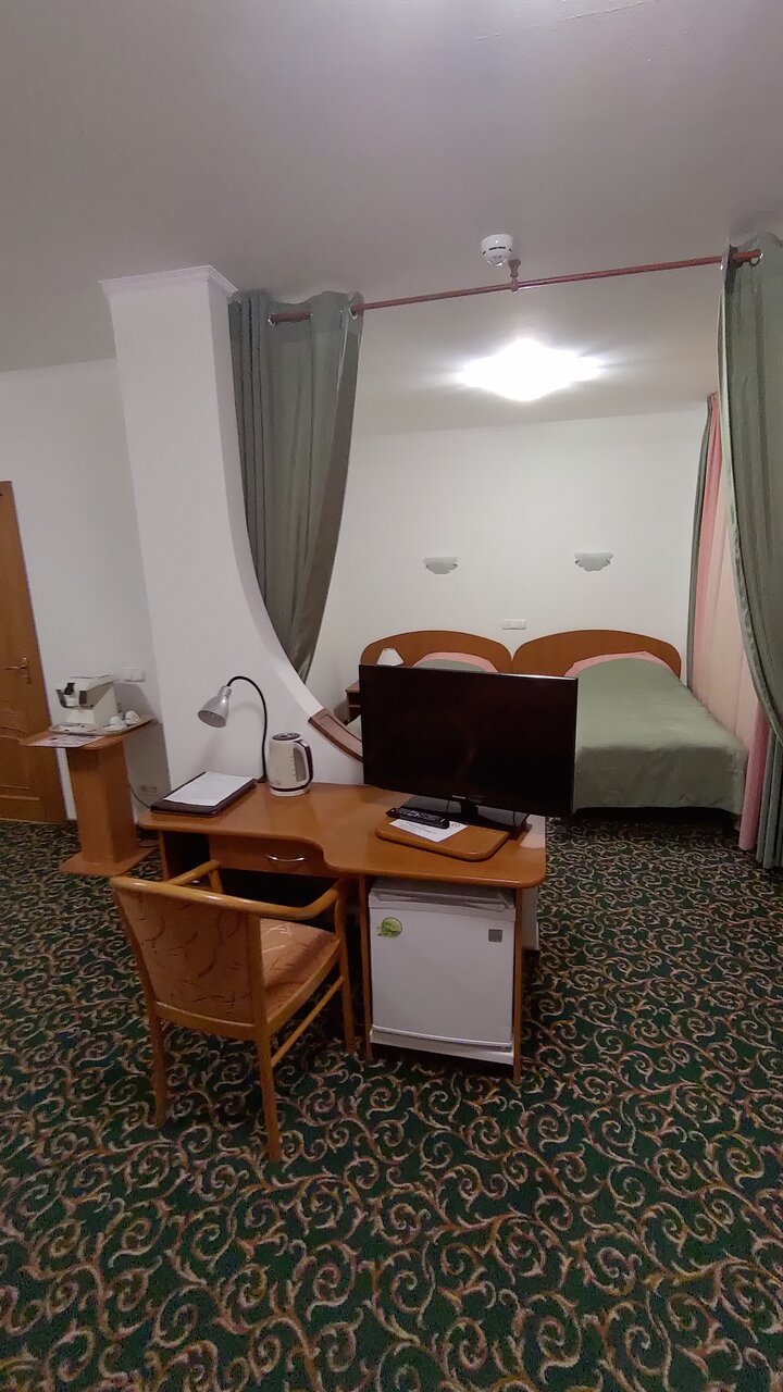 Номер чисто убран, было все необходимое- фен, чайник, пакетики чая и кофе. Полотенца и постельное бельё белоснежные и свежие. Матрас удобный. Завтрак шведский стол, достаточно вкусно. Красивая ухоженная территория. Персонал очень старается!