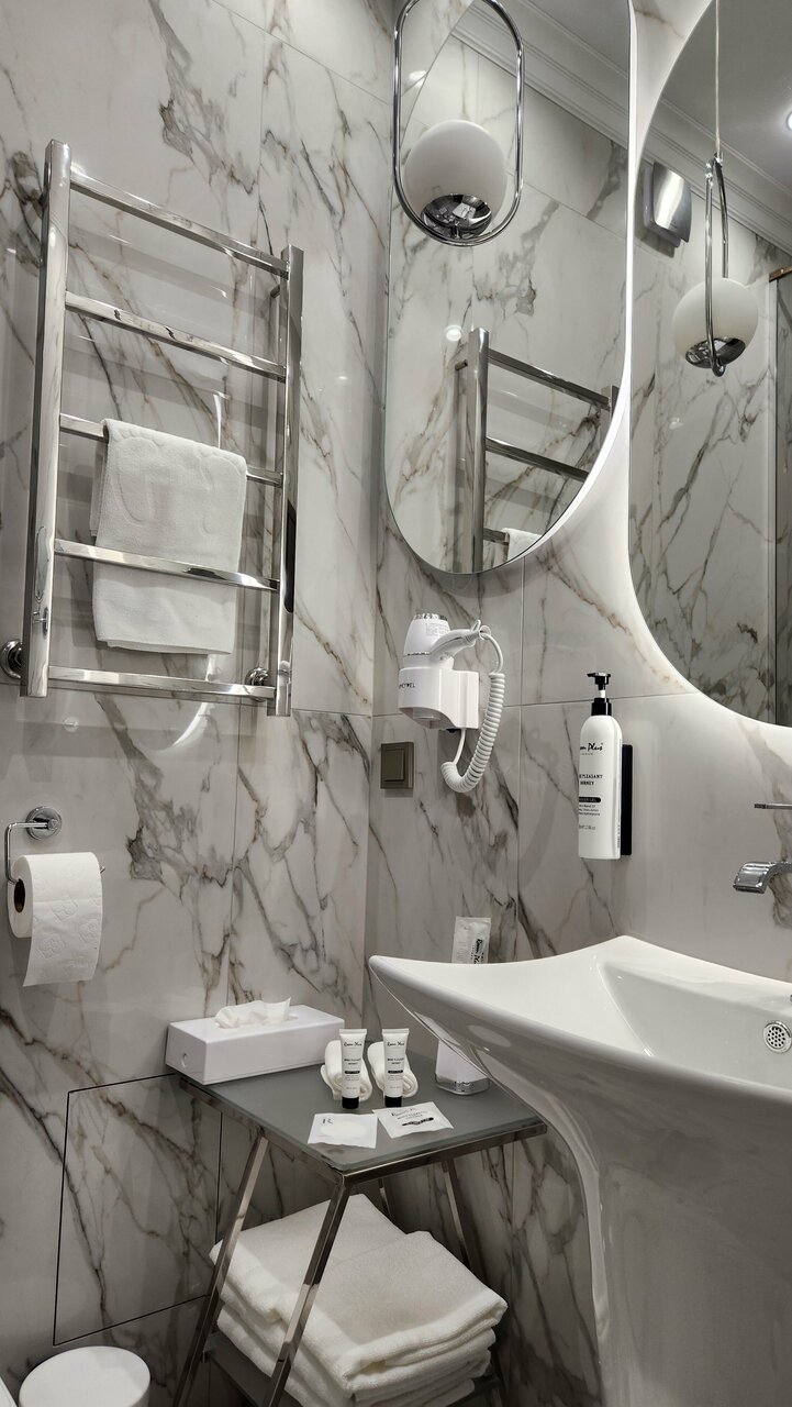 Отличный отель на высоком уровне! Новый, открылся совсем недавно, вс чистое, крепкое, ‘с иголочки’, как только что из магазина. Ванная супер, кровати тоже. Прикрепляю меню завтраков. Лобби нет, бани тоже. Персонал хороший, но иногда о чём-то нужно напоминать. Уборка качественная. Есть зубные щётки и ватные диски, халаты и тапочки. В целом впечатления очень приятные! Странно, что при выезде не отпускают, пока не проверят номер