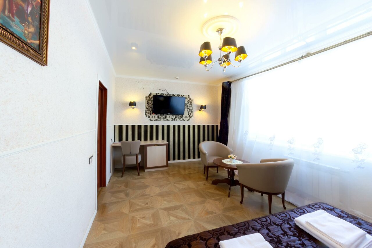 Из плюсов: быстро до вокзала, номер достаточно просторный, администраторы приятные Из минусов:все очень грязное, занавески старые, порванные, полотенца застиранные. Отвратительный запах канализации из ванны