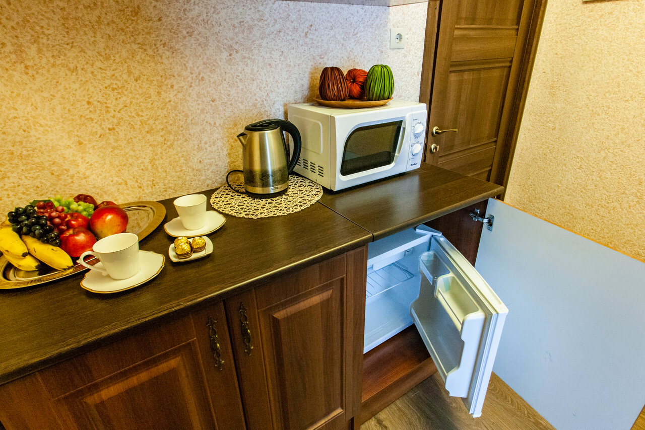 Комфортный номер с собственной ванной комнатой(ванная) и санузлом , с двуспальной кроватью и диваном . Номер оснащен Wi-Fi, плазменным TV с кабельными каналами , холодильником , СВЧ, эл.чайником,тумбой прикроватной и индивидуальными туалетными принад