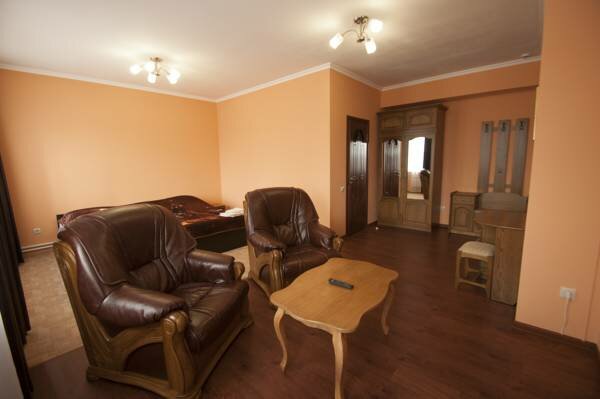 Улучшенная двухместная комната имеет большую площадь. В комнате есть 2 односпальные кровати, диван-кровать на двоих, шкаф, тумбы, телевизор, кондиционер, фен и утюг в местах общего пользования.