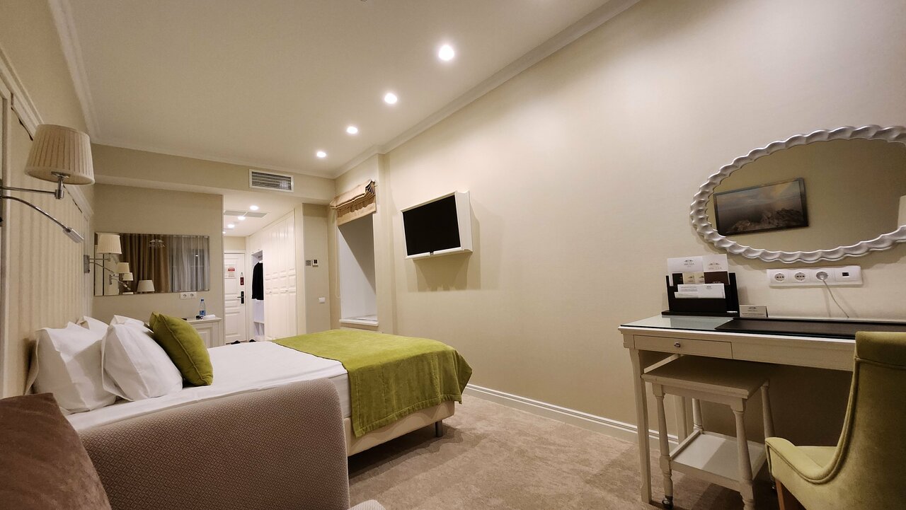 Достойная гостиница. Отличный завтрак с игристым. Хорошее белье. Центровое место,все необходимое в шаговой доступности. Приветливый персонал. Спасибо за гостеприимство