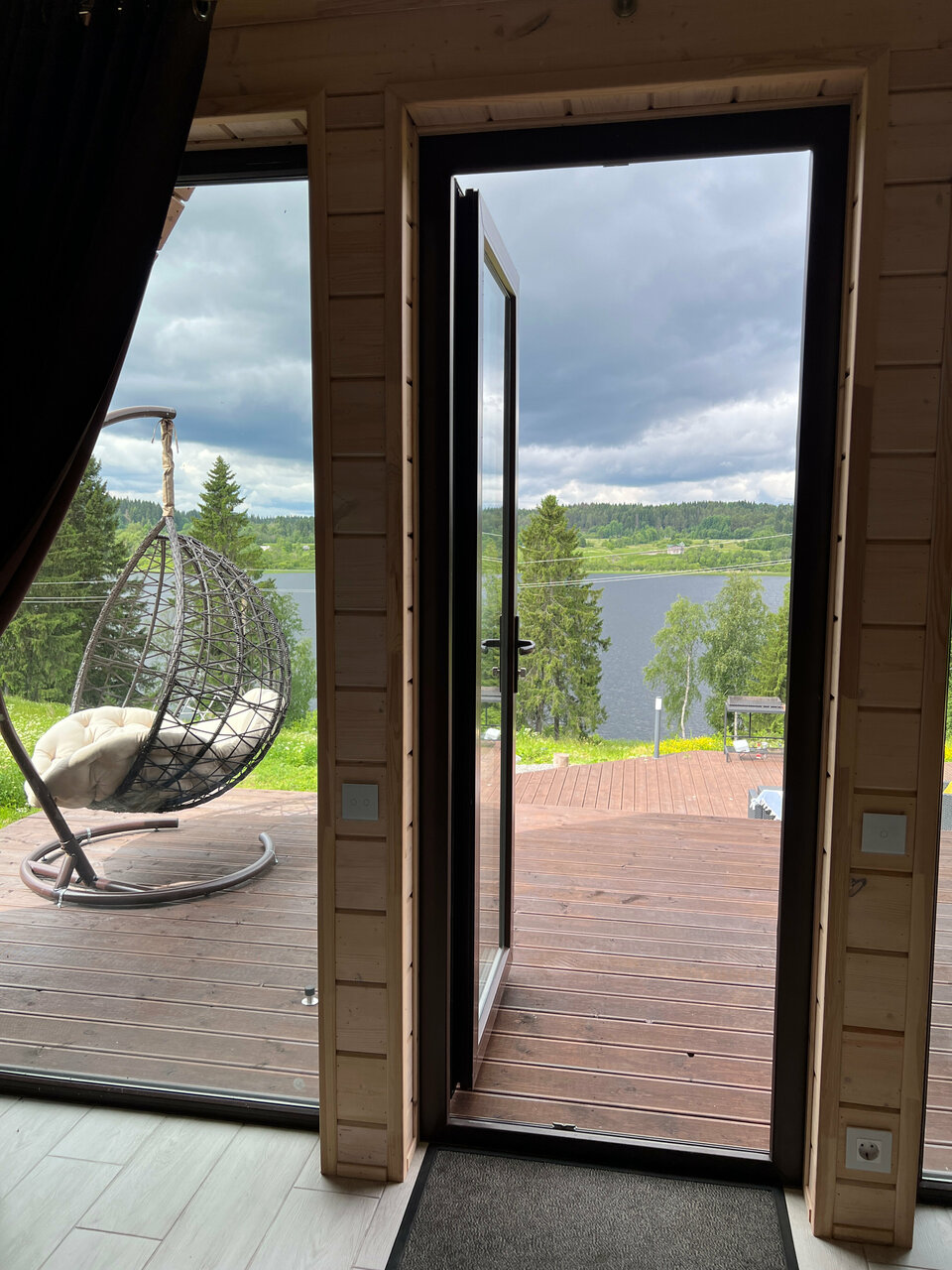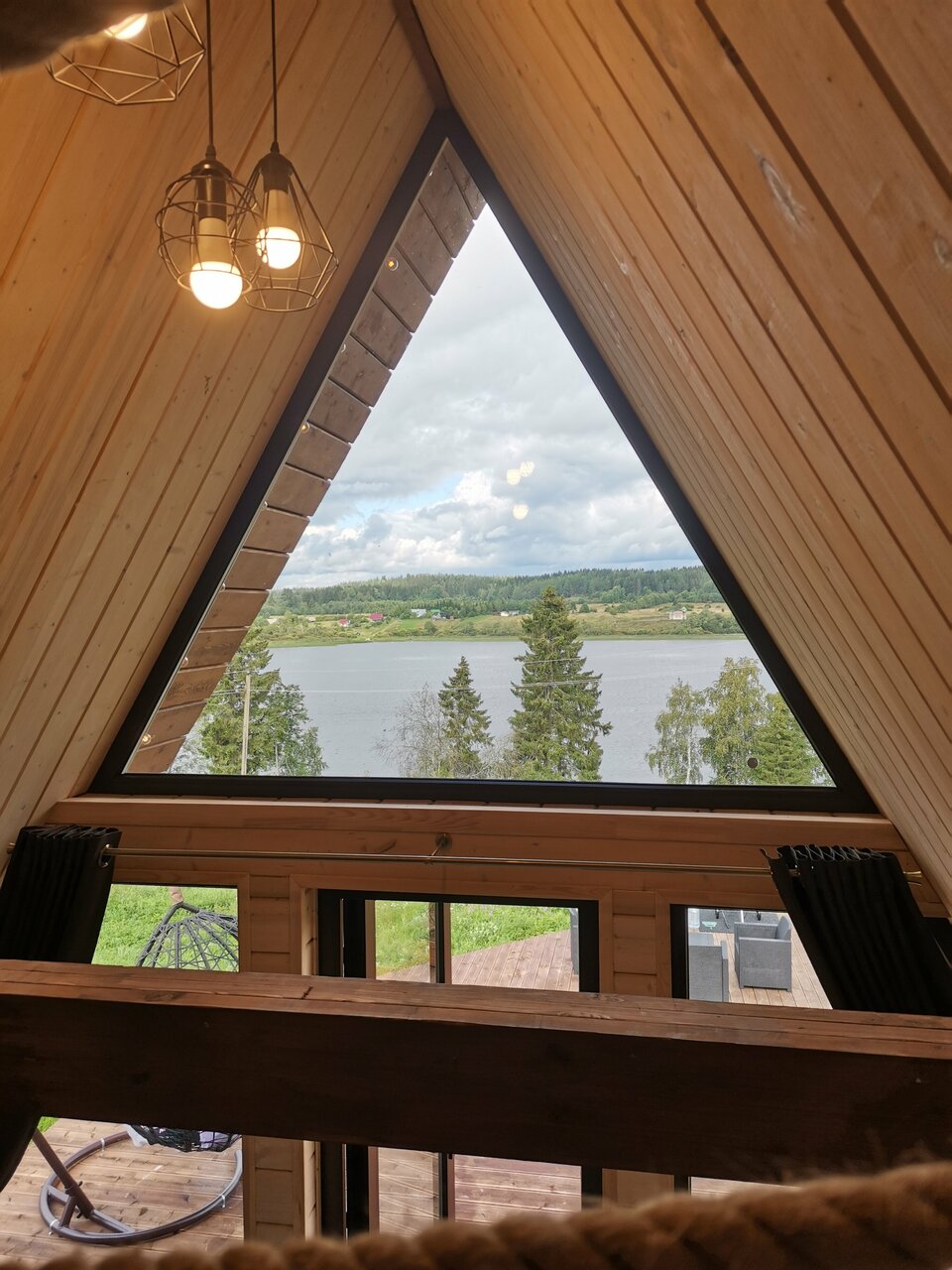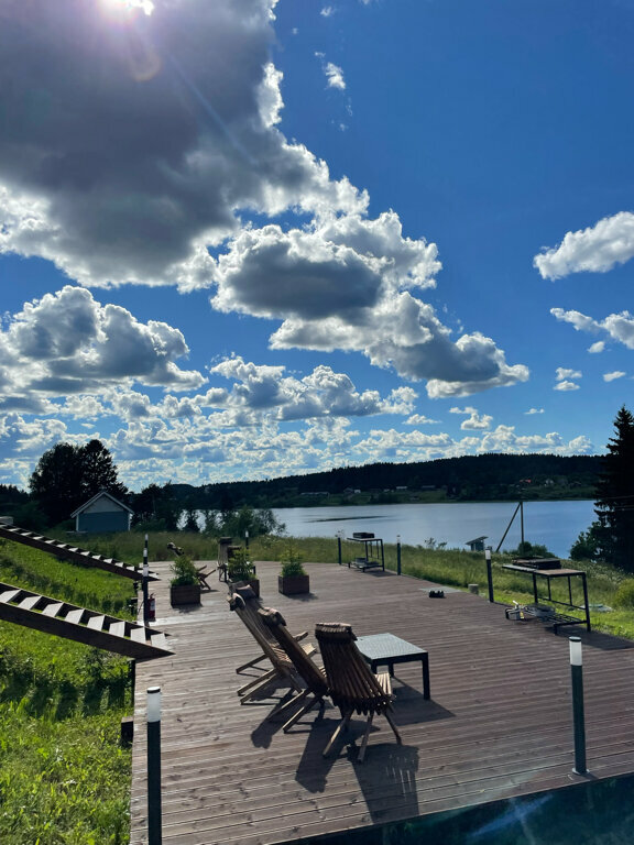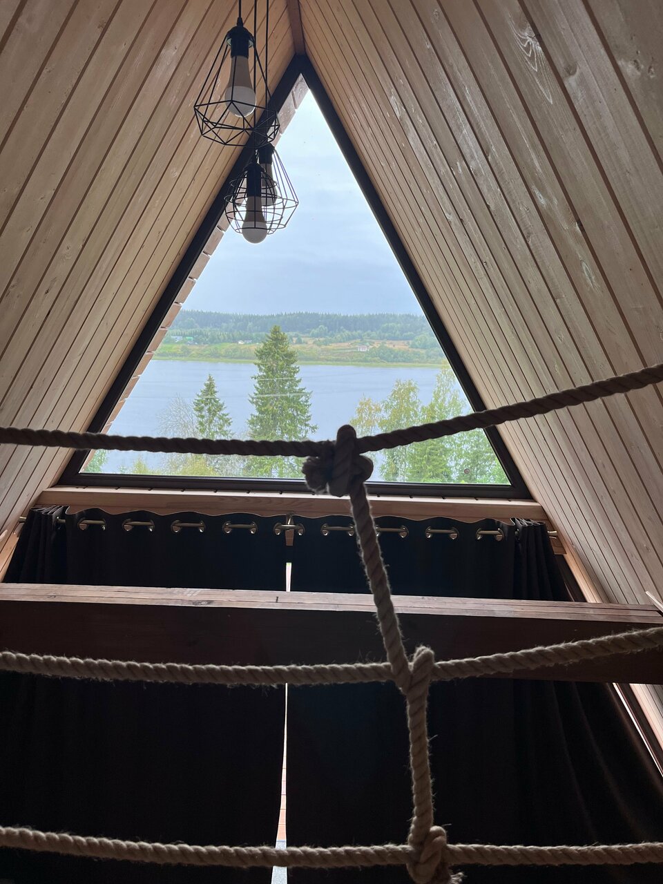 Отдыхали с женой летом. Отличное место на берегу озера: два коттеджа вида A-Frame на берегу озера с панорамным видом на закат. У коттеджей общая уютная терраса, на террасе два мощных гриля, можно целого кита зажарить. Для гриля все есть: розжиг, угли, полный набор инструментов: кочерга, щипцы, щетка. В самом доме большой телевизор, диван, холодильник, варочная панель, капельная кофеварка (ребята покупают к ней финский кофе), микроволновка. Есть теплые полы, в ванной хорошая сантехника и всякие плюшки типа зеркала с подсветкой. Кровать двуспальная, на втором этаже, совсем под крышей, но можно встать в полный рост. В стоимость проживания так же входит лодка и сап. Администрация очень дружелюбная и приветливая, готовы помочь с любыми вопросами. В общем настоятельно рекомендую!