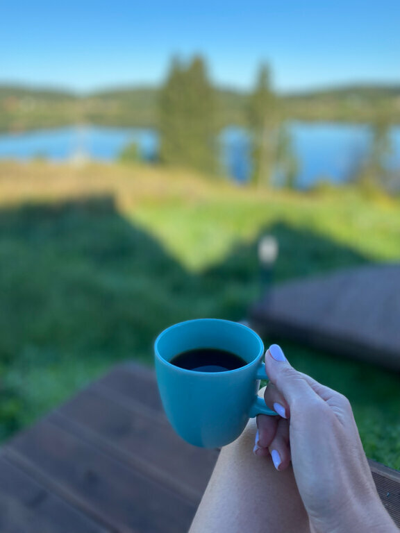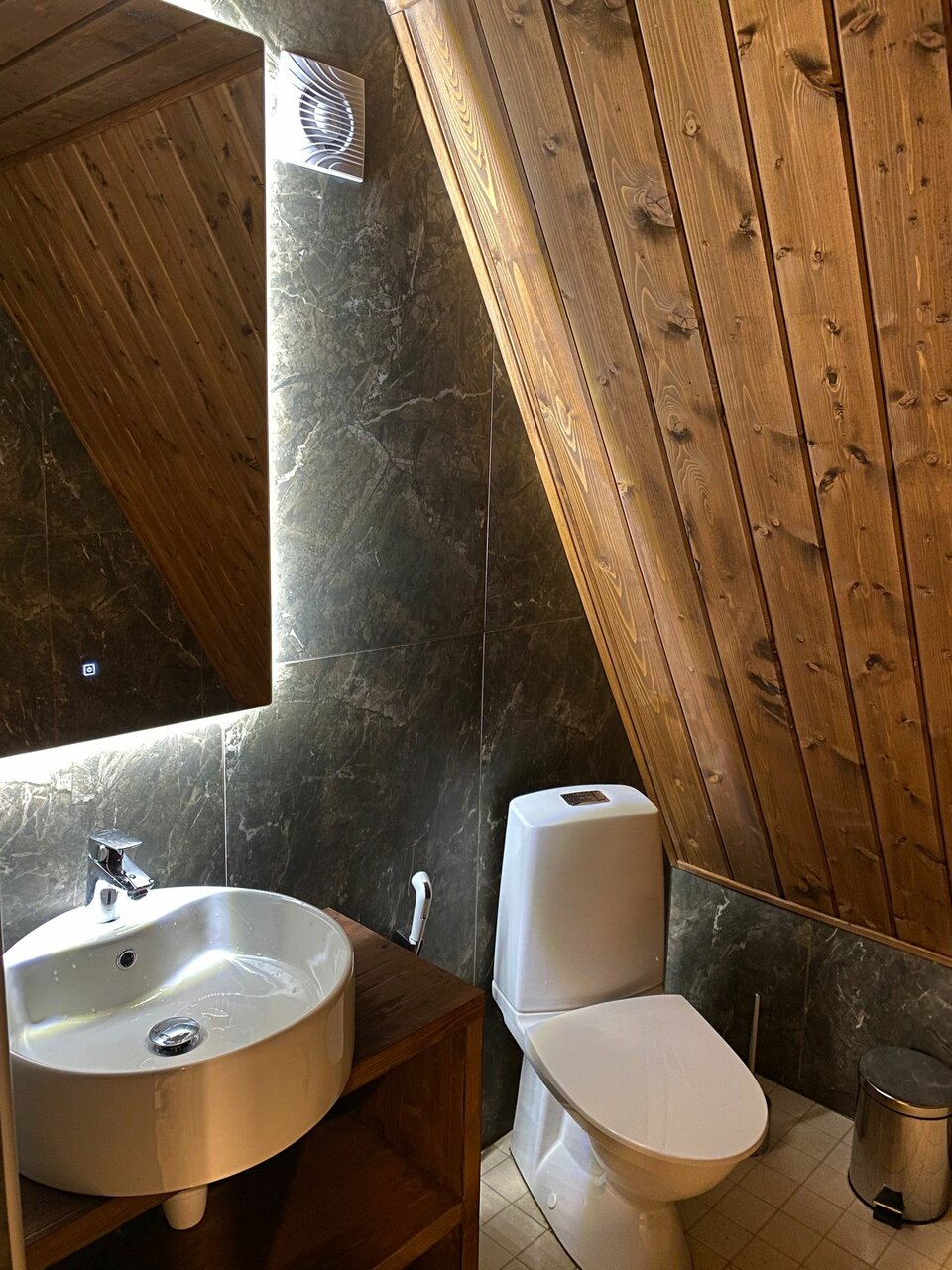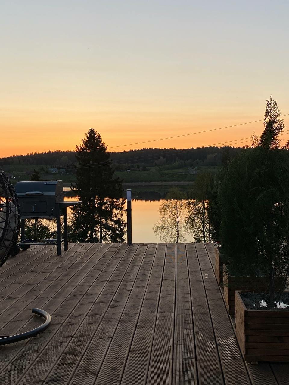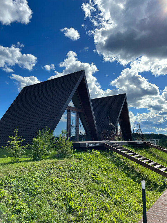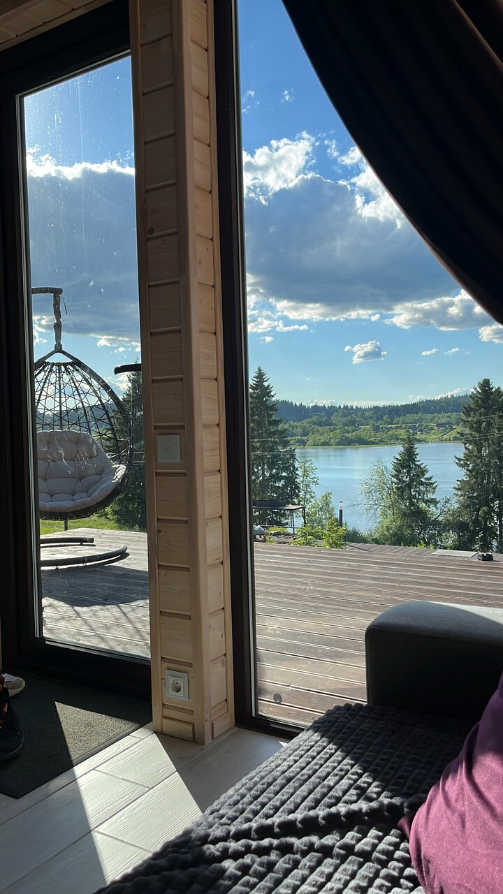 Отдыхали с женой летом. Отличное место на берегу озера: два коттеджа вида A-Frame на берегу озера с панорамным видом на закат. У коттеджей общая уютная терраса, на террасе два мощных гриля, можно целого кита зажарить. Для гриля все есть: розжиг, угли, полный набор инструментов: кочерга, щипцы, щетка. В самом доме большой телевизор, диван, холодильник, варочная панель, капельная кофеварка (ребята покупают к ней финский кофе), микроволновка. Есть теплые полы, в ванной хорошая сантехника и всякие плюшки типа зеркала с подсветкой. Кровать двуспальная, на втором этаже, совсем под крышей, но можно встать в полный рост. В стоимость проживания так же входит лодка и сап. Администрация очень дружелюбная и приветливая, готовы помочь с любыми вопросами. В общем настоятельно рекомендую!
