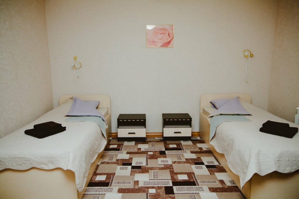 На удивление очень хорошая гостиница… Когда приехал и увидел, как она выглядит снаружи — похожа на промышленный склад, сначала приуныл… Но, войдя внутрь, настроение улучшилось — чистые, ухоженные номера, не большие, но со всем необходимым… То, что туалет и душевая не в номере, меня не сильно напрягло, наверное потому что я фактически жил один в гостинице и поэтому никакого дискомфорта не испытал… Все очень чисто, без неприятных запахов… Из минусов — берите с собой тапочки, чтобы ходить до туалета и душевой, или можете приобрести тут же за 100 рублей тряпичные… Мыльно-рыльные принадлежности тоже с собой, их нет. Полотенца выдают. Внизу есть кафе, но оно не готовит завтраков, не ориентировано на клиентов гостиницы. Цены дороговаты. Персонал отзывчивый, желаю им успехов и развития!
