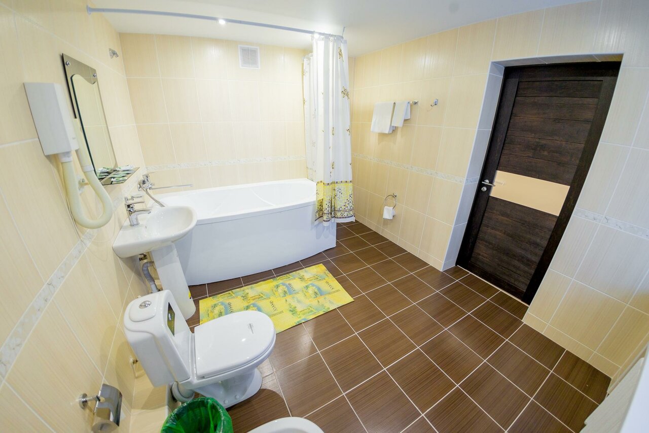 - Комфортные номера (просторные, чистые, новая техника).