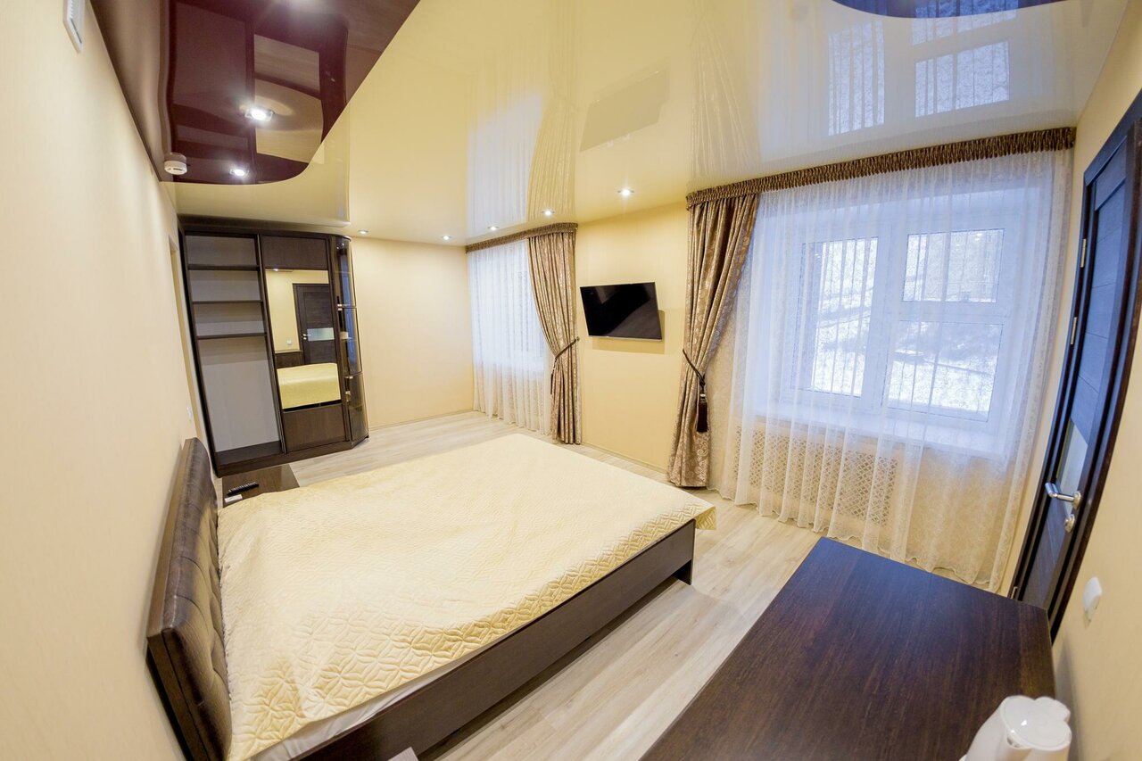 - Красивая гостиница.; Комфортные номера (просторные, чистые, новая техника).; Добродушный и вежливый персонал.; Удобное расположение (центр, рядом магазины, остановка).; Возможность проживания с питанием (шведский стол на завтрак).