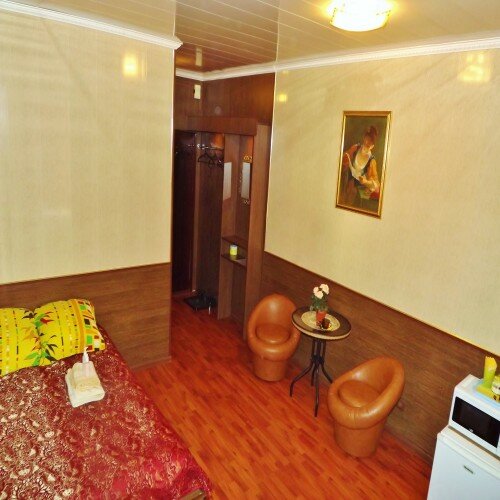 Приезжаю в эту гостиницу уже не первый раз. Очень приветливый и весёлый администратор. Номер на двоих большой места очень много. В номере есть чайник, холодильник, микроволновка и бутылочка не газированной воды причём если вы остановились на несколько дней то вы можете брать по бутылочке каждый день. Мелочь но приятно. Как я уже говорил номер большой в туалете с душем тоже место много. Также есть фен что очень понравилось моей дочке. Цена очень приемлемая 2990 рублей. Всем советую и рекомендую