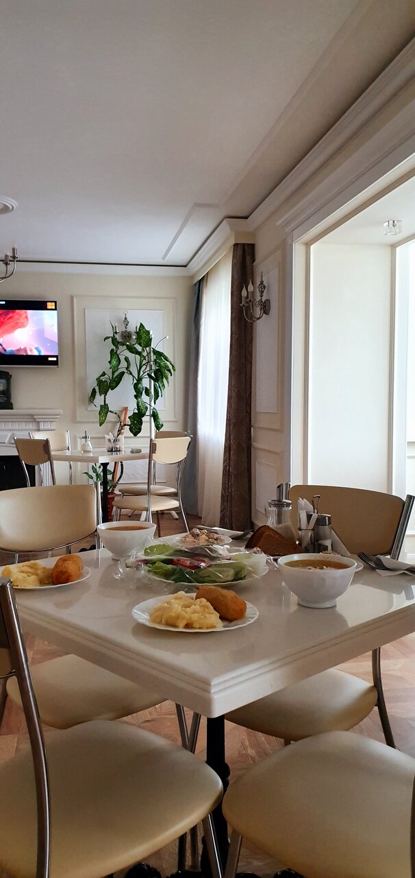 Второй раз в этой гостинице. Всё чистенько, опрятно, персонал очень приветливый. Есть типа общей кухни, где можно приготовить или разогреть еду и там же покушать. Посуда в наличии. Рекомендую!
