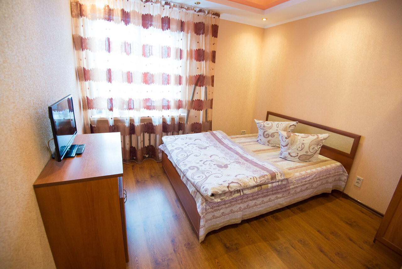 Услуги: — Номера с кухней/кухонным уголком, кондиционером, Wi-Fi, телевизором, холодильником, феном, посудой и чайником. — Бесплатный трансфер (аэропорт, ж/д вокзал). — Парковка, уборка, стиральная машина, утюг. — До центра города — менее 1 км.