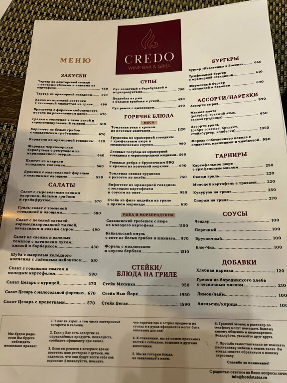 - Хорошая кухня в ресторане (авторская, разнообразное меню).