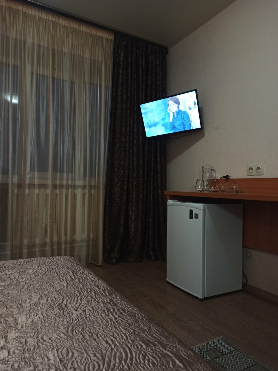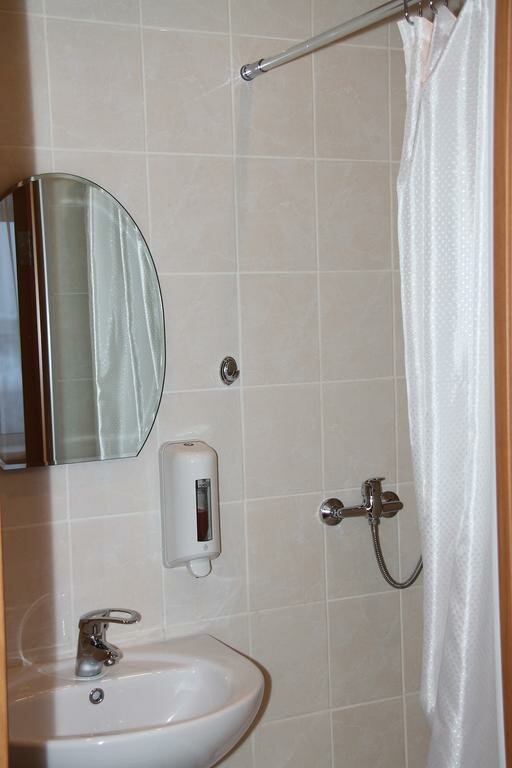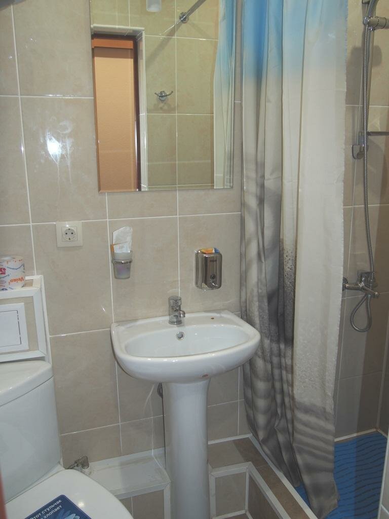 Понравилось то что в номере на одного был удобный матрац, чистое постельное бельё, свой холодильник. Была своя раковина, стоял телевизор. Номер не большой, очень органиченное пространство. Душ и туалет на этаже общие. Душ вполне удобный и просторный. Туалет по скромнее в площади. Администатор заинтересована в удобстве постояльцев. На 4 этаже есть кафе с хорошим выбором блюд. На 1 ресторан, но к окончанию его работы из меню вы многое заказать не сможете — кухня готовится к закрытию.