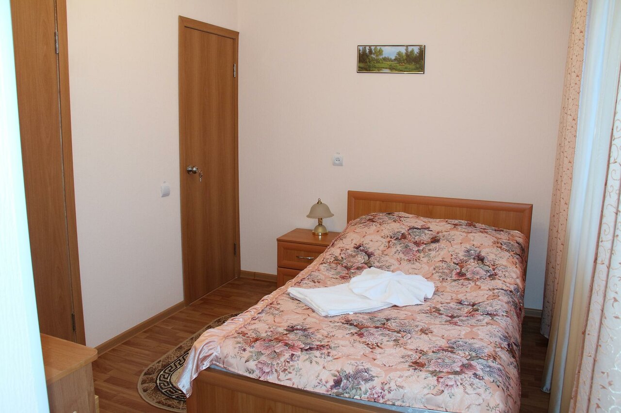 Ужасная гостиница, в номере нет отдельного туалета с ванной, на простыне были какие-то волосы с крошками, видимо никто белье не менял с прошлого жильца, нет шкафа, нет тапочек, нет чайника, полотенца хоть были, но крайне потрёпанного вида. Ручки на дверях того гляди отвалятся, выдаётся 3 одинаковых ключа, от туалета, от номера, от душа, хоть бы подписали какой от чего , к то каждый раз тыкаться. А ещё одеяла советских времён, и даже не вставлены в пододеяльники, вставляйте, мол , сами