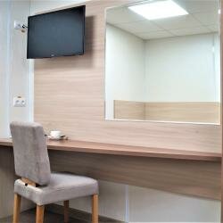 - Наличие кулера с водой.; Наличие халатов, тапочек, душевых принадлежностей.; Хороший ремонт.; Уютные и опрятные номера.; Новая мебель и техника.