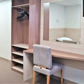 В гостинице чисто, уютно, новая мебель и техника. В коридоре есть кулер с водой. Из минусов разве что, отсутствие розеток вблизи кровати и отсутствие питания (или хотя бы микроволновки) Персонал приветливый и доброжелательный. В целом понравилось.