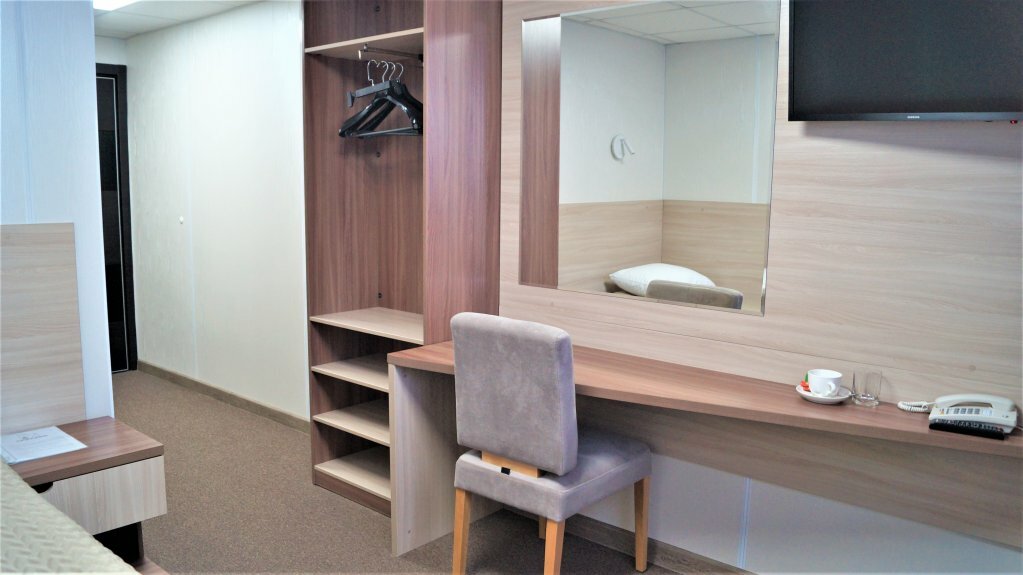 Чистый, уютный номер. Имеется всё необходимое: халат, тапочки, душевое… Мебель и сантехника в достойном состоянии. Парковка на сто плюс машин. Гостиница стоит в отделении от жилого массива, что даёт преимущество в тишине. Персонал приветливый, попросил сделать скан документов.,. пожалуйста… P.S. Бывалый командировщик.