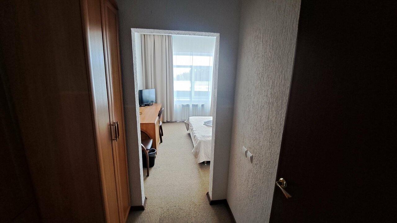 Прожил 4 дня. Персонал приветливый, вежливый. Нормальный завтрак был только в первый день (выбирал блюда по меню), потом выдавали скудный сухпай. На второй день в номере перестали убирать, и даже чай в пакетиках выдавать. В номере было очень холодно (спасибо администратору — дали обогреватель) и очень хорошо слышно других постояльцев. Мебель в номере дешёвая, тапки не дают.