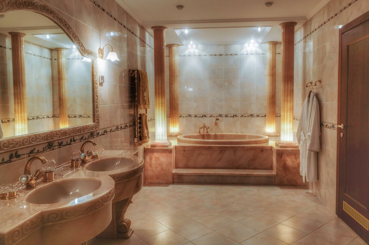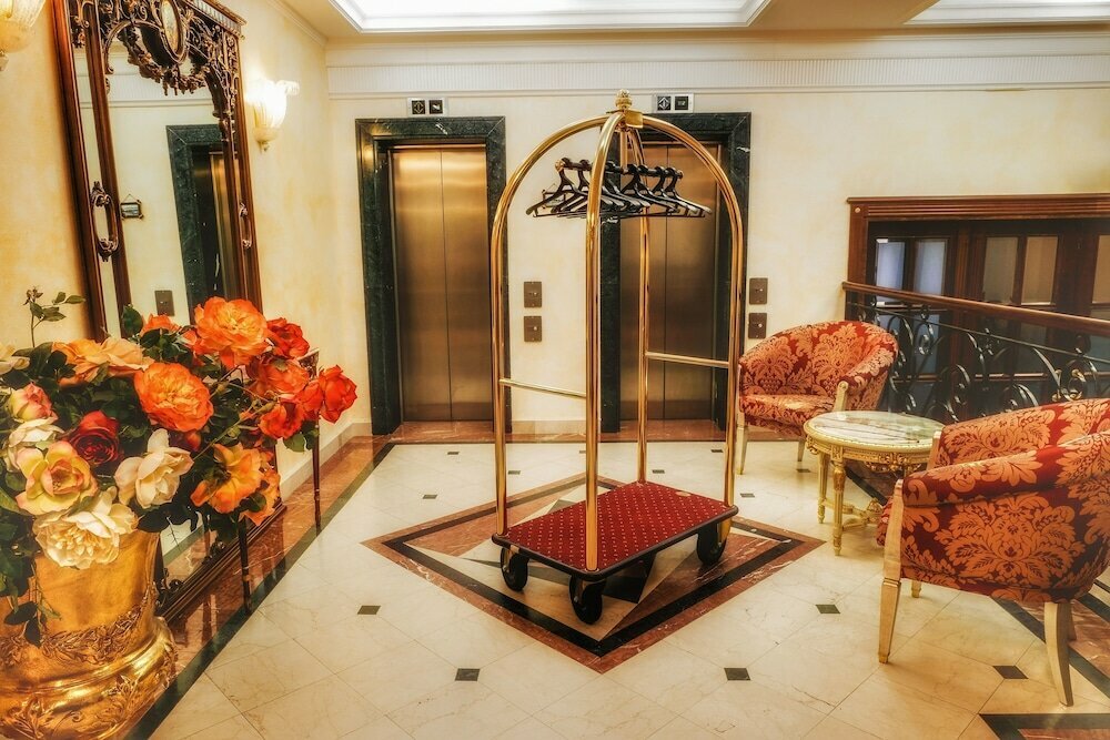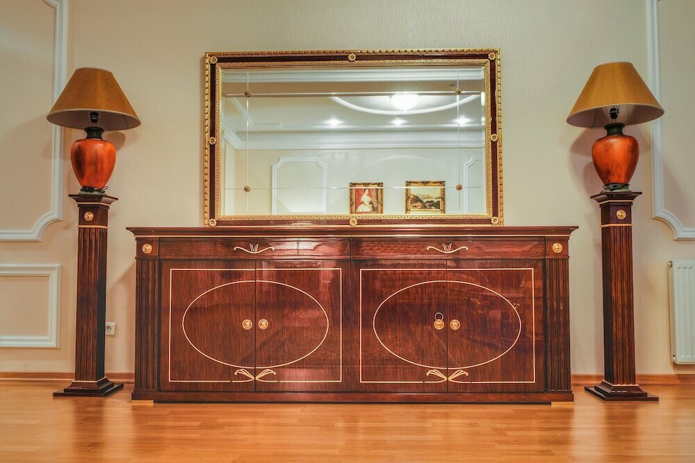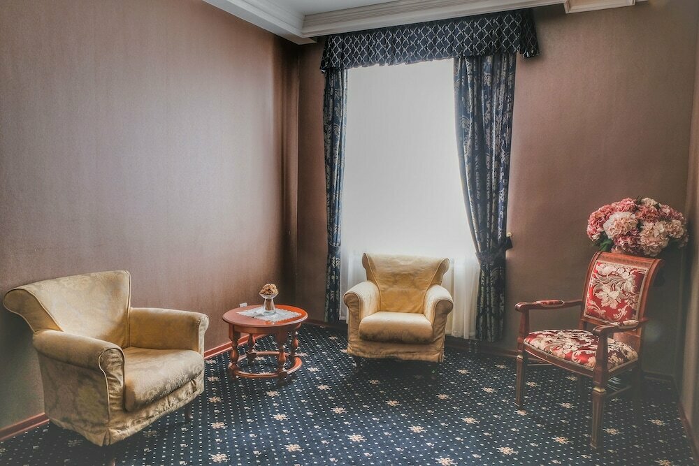 На первый взгляд круто и пафосно, а если чуть присмотреться, то обшарпаная красота. Блин я там в первые за 5 лет ламповый телевизор увидел и это в 4* гостинице))). Ламинация на столе вздулась и облазеет, входная дверь внутри пошарпаная со сколоми на косяке, походу ее закрытую в коридор пытались с ноги вынести. А как вам шатающаясь плитка на ступенях входной группы???. Был три дня — даже сделать не попытались. На завтраках целое шоу происходило, столовая была на ремонте и завтрак проходил в каминном зале, так вот заходишь в зал, а там ни души и надо было найти кухню и докричаться до поваров))) И так три дня!!!))). Вообщем нашел нормальную квартиру и съехал туда. После данного отеля понял почему квартиры бизнес-класса все заняты!