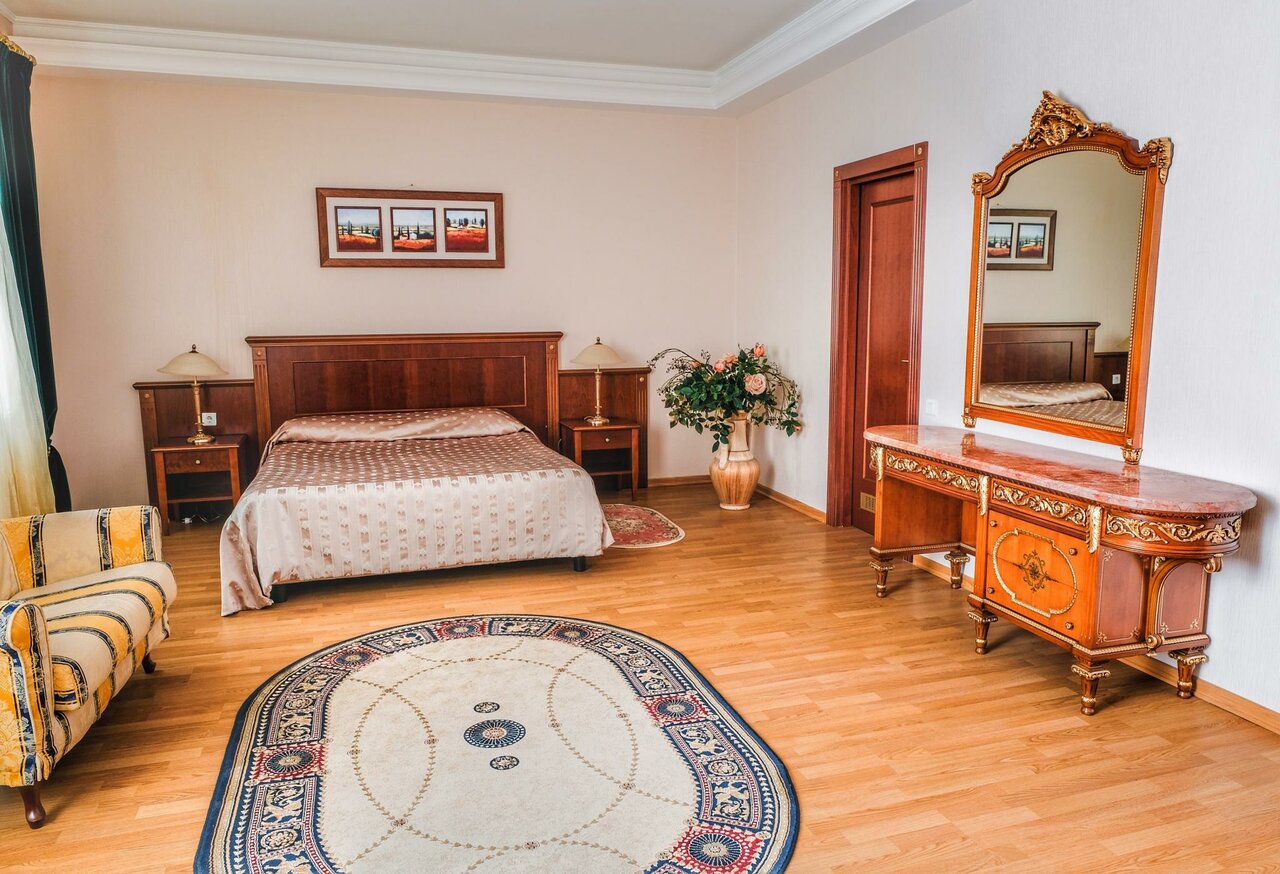 Просторный номер со спальней и гостиной, где можно дополнительно поставить две кровати. Две ванные комнаты, гардеробная и большой личный балкон — всё, что нужно для комфорт