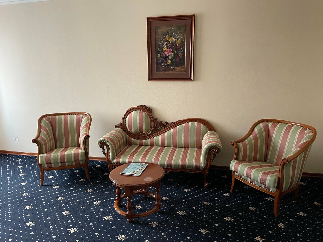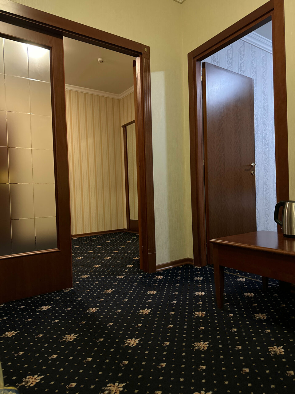 Гостиница на 4 звезды, во время ковида была обсерватором, поэтому номерной фонд ушатали, не весь конечно, ресторан на первом этаже супер вкусно, завтрак шведский стол разнообразно и вкусно, рекомендую.