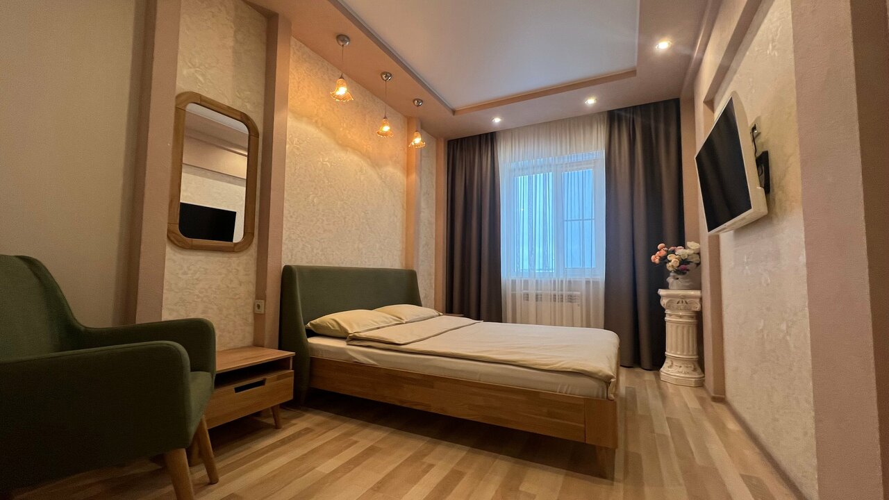 Проживал в апартаментах одни сутки, интересный и хороший ремонт, квартира чистенькая, на кухне есть все необходимое для приготовления пищи. Рекомендую для проживания.