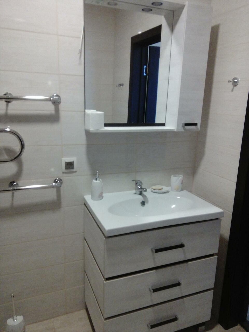 Хорошее место. При этой цене все очень даже прилично. Есть кухня с посудой. Холодильник в номере. Единственное что я бы посоветовал владельцу — сделать стену гипсокартонная и двери и разделить в санузле туалет и душ. А то всё в едином помещении находится. Вообще бы классно стало.
