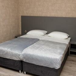 Просторный и уютный двухкомнатный номер в деревянном корпусе площадью 40 кв.м., состоящий из двух изолированных спальных комнат. В каждой комнате двуспальная кровать и односпальная кровать. Номер расположен на 1 этаже. Подойдет для 6 гостей.