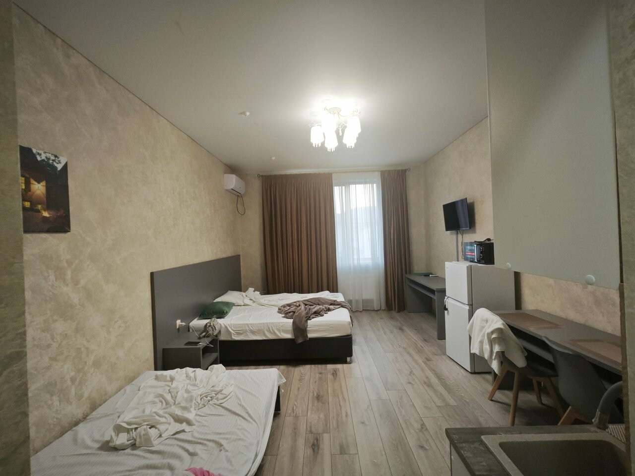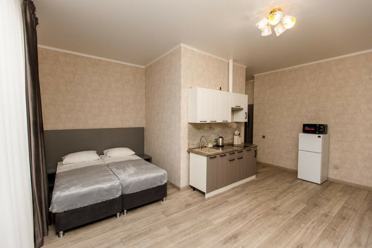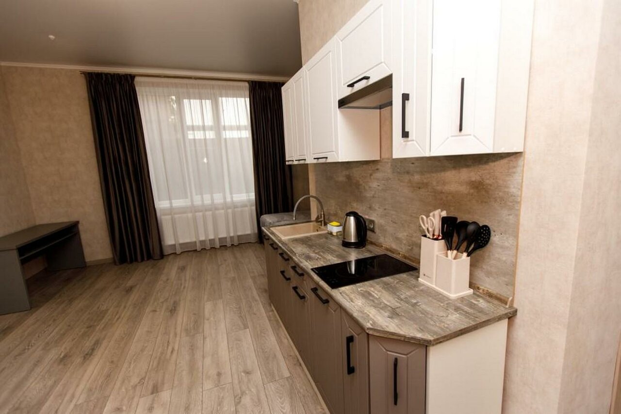 Отличный апарт -отель. Уютно, тихо, комфортно. Белые, чистейшие простыни выше всяких похвал. Супер вариант для путешествующих по м4, хотя и не на самой трассе. Администраторы приветливые, находятся на ресепшн круглосуточно. Парковка в отеле только на 2 машины. Соседние два здания-продуктовые магазины. Кухня в номере оснащена достаточно для полноценного завтрака. На ресепшн есть кулер. Все замечательно.