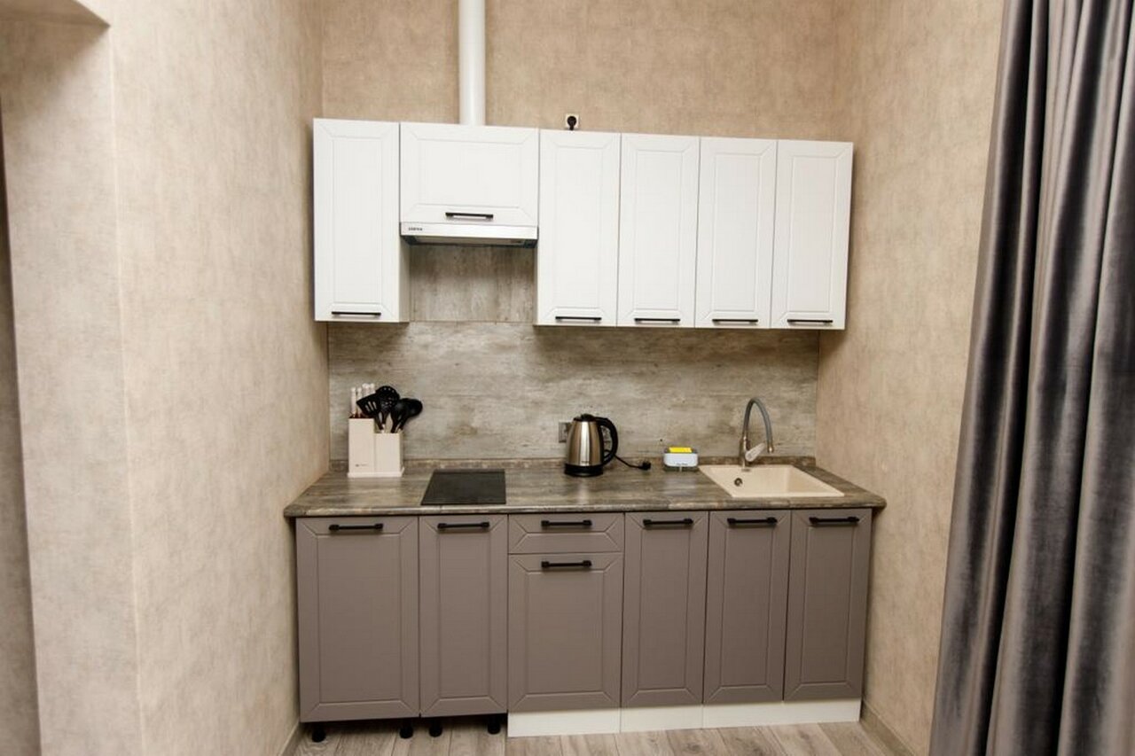 Останавливались с мужем и двумя детьми на ночь. Очень понравилось всё — всё чисто, блестит и сверкает. Жили на 2 этаже. Ремонт, мебель — всё идеально. В номере есть полноценная кухня, посуда. В коридоре доска с утюгом. Идеально белое, чистое бельё. Кто будет бронировать заранее, попросите включить кондиционер до заезда. Мы приехали спонтанно.