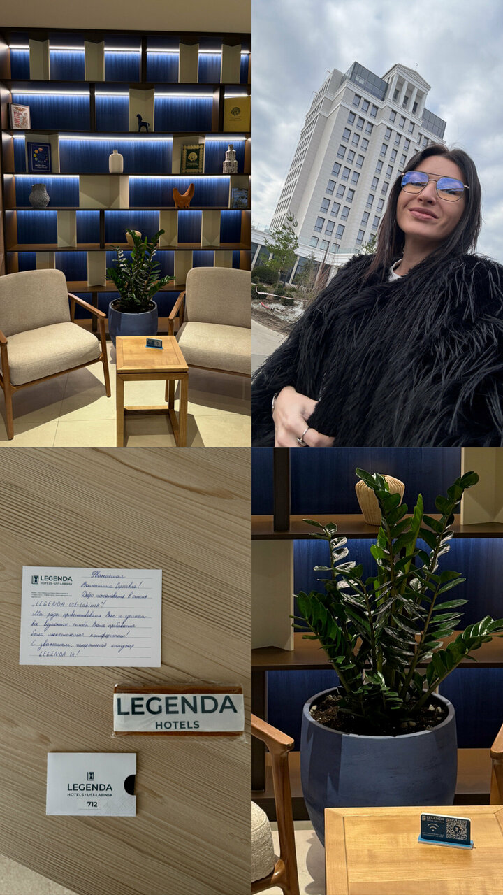 Провела в отеле всего пару дней, так как была проездом в командировке и осталась очень даже довольна условиями и обслуживанием. Несомненный плюс — расположение в центре, близко от достопримечательностей, добраться можно хоть на машине, хоть на общественном транспорте. Интерьер я бы сказала больше минималистичный, сдержанный, но стильный и уютный. Мне понравилось, чисто, красиво и ничего лишнего. В номерах есть все что нужно для комфорта, мебель удобная, матрас и постельное белье тоже качественные и хорошие. В ресторанах еда вкусная. Еще как свадебный организатор отмечу наличие хороших банкетных и конференц-залов. Из поездок я всегда привожу максимум полезной информации о новых локациях и местах для отдыха. Про отель Легенда тоже сделала видеообзор, который можно посмотреть на канале Тревел & Ивент Ревизорро. Теперь есть плюс еще одно место в мою копилочку, в которое при возможности вернусь снова и готова советовать к посещению другим.