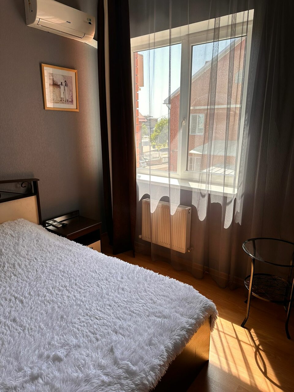 Центр города, но тишина. Стоянка, кухня, спортзал. Уютно, без излишеств.