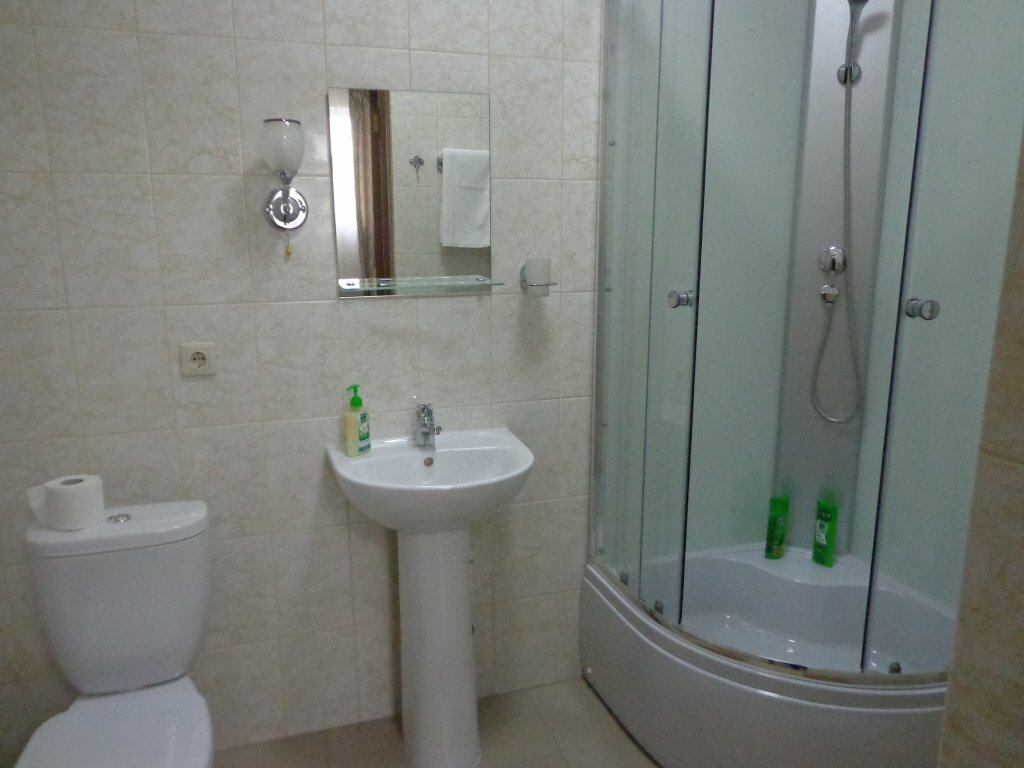 2 звезды- только за просторный номер. В ванной (совмещенный санузел) старая душевая кабина, металлические держатели ржавые, все прокладки в плесени. За 5 часов пребывания в номере началась аллергия. Бумага и средства гигиены есть, с этим все отлично, но- чайник есть, а чашек нет, только графин и два стакана, и ни одной ложечки. Постельное белье старое, местами в пятнах. Полотенца были, и чистые, тут претензий нет. Самые большие плюсы- центр города и просторный номер.