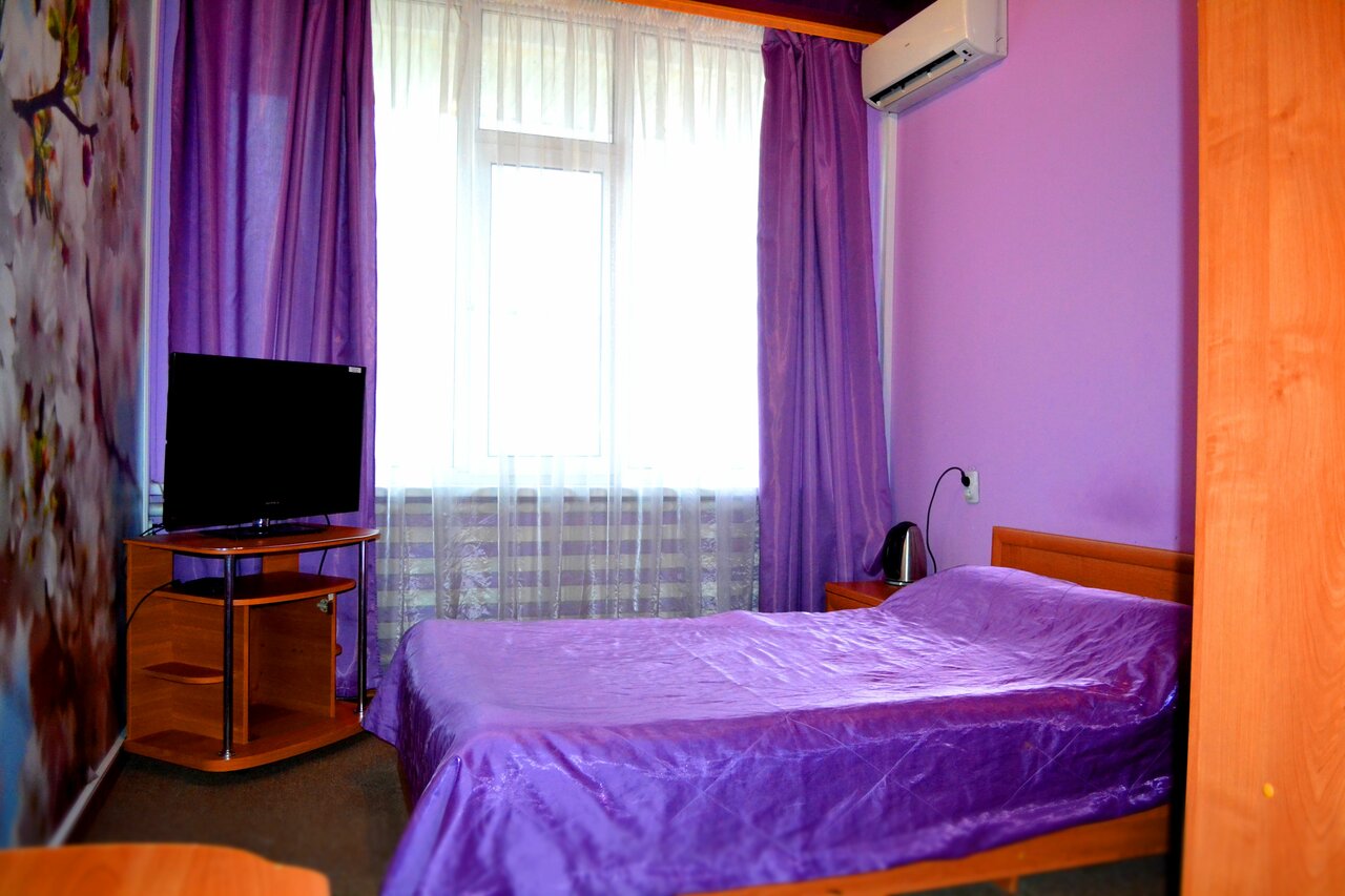 номера с большой 2-спальной кроватью в номере холодильник, сплит-система, душевая и туалетная комнаты
