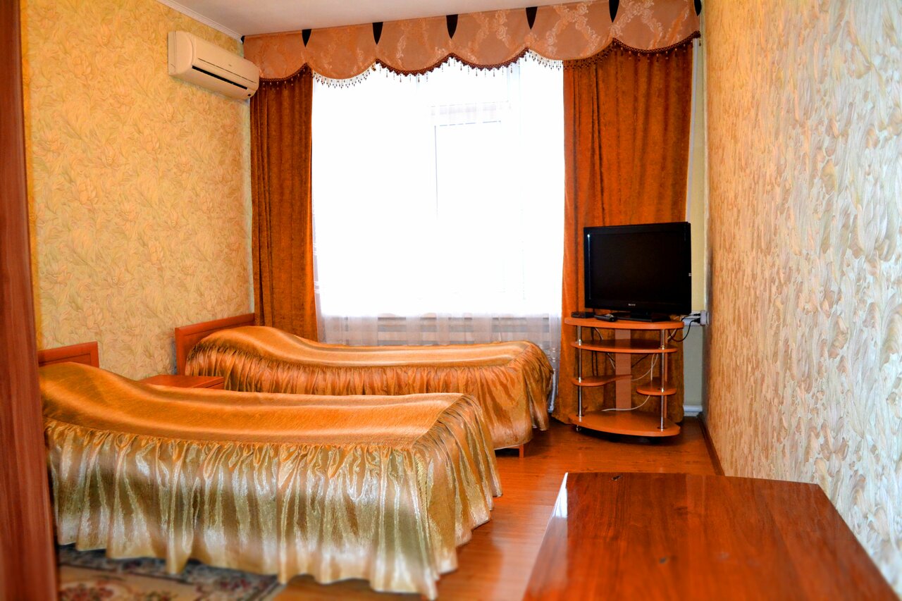 номера с двумя односпальными кроватями в номере холодильник, сплит-система, душевая и туалетная комнаты