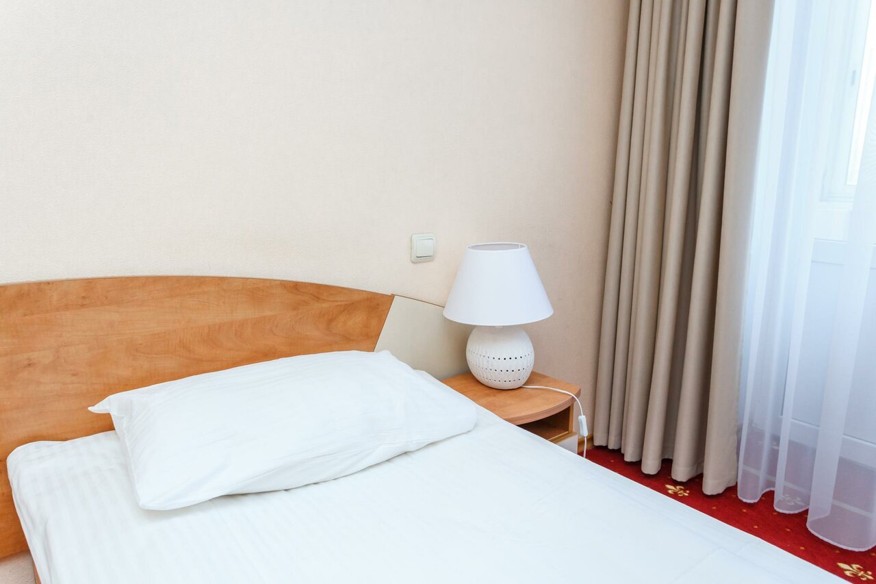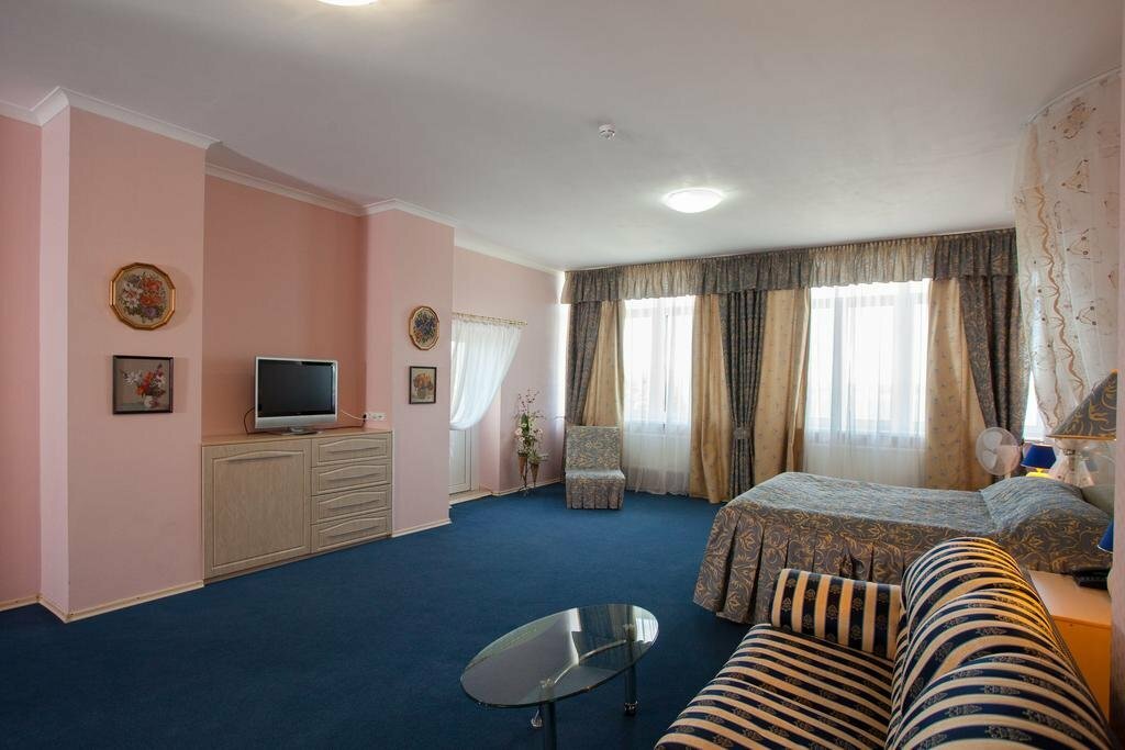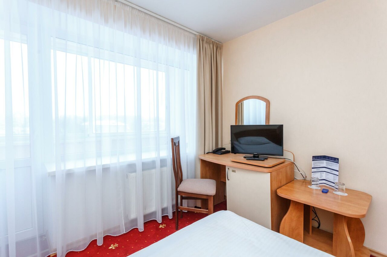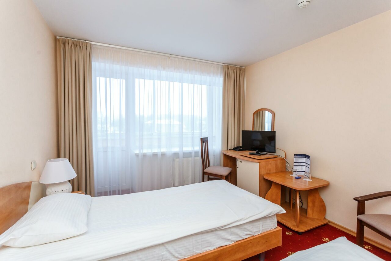 Были в этой гостинице проездом. Номерной фонд, конечно, оставляет желать лучшего. Немного уставший. Старый красный ковролин на полу, собранный из лоскутков. Номер у нас был стандарт с балконом. Застекление вроде нормальное, на сам балкон не выйти — он для этого не готов, куски побелки валяются. Матрас хороший, подушки тоже. За ночь выспались на них. Шампунь, гель для душа имеются в ванной. Завтрак по системе ‘Шведский стол’. Сосиски, блины, омлет, запеканка, каша овсяная, нарезка овощей, сыра,колбасы, кофе в кофемашине — для дальней дороги нам всего этого хватило. Одно пожелание к администрации — начать реновацию номерного фонда. В остальном, всё хорошо. И расположение, и парк рядом, и доброжелательный персонал.