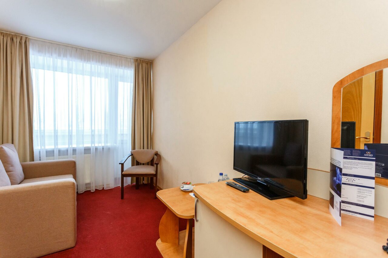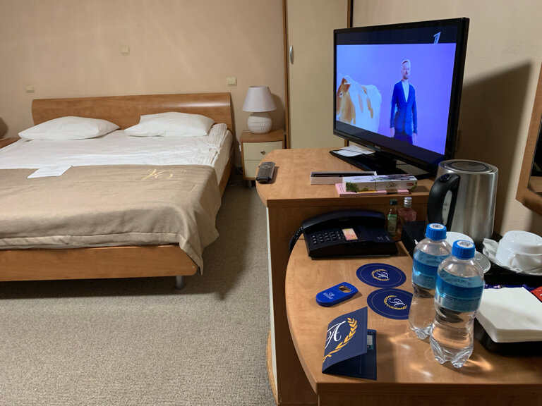 Одна из лучших гостиниц Валдая! Заказывал стандартный дабл (без вида на озеро). При заселении повысили до люкс двухкомнатного с видом на озеро!! Ну не чудо ли? В номере чисто и хорошо. Мягкая кровать! Тапочки, халат!