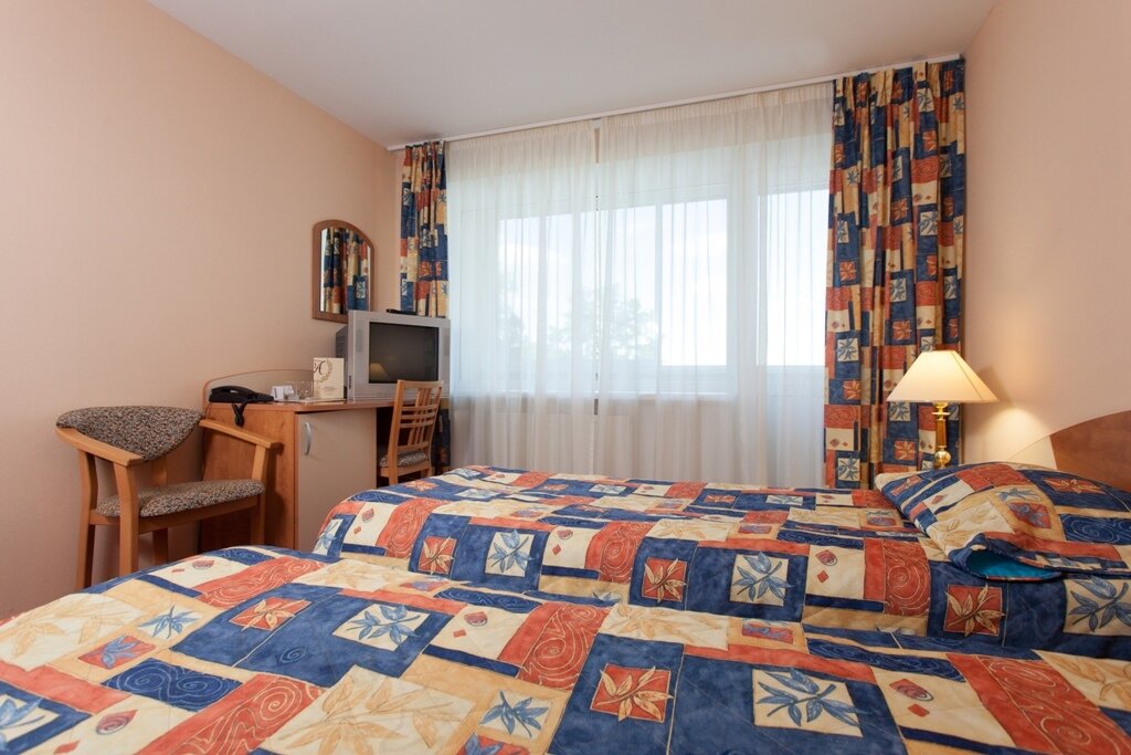 Плюсы: недорого, на берегу красивого озера, недалеко от исторического центра, чисто Минусы: тесновато, такой прямо эконом-отель. потёртый какой то, всё старенькое: мебель без ручки шкаф, сантехника нуждается в чистке и ремонте. Так то в номерах чисто, но в целом отель нуждается в обновлении уже давно! Питание — шведский стол, но бедноватый такой, то кофе автомат не работает, то хлеба нет… Вердикт: на одну ночку самое то, но жить неделю слишком тесно и не очень комфортно!